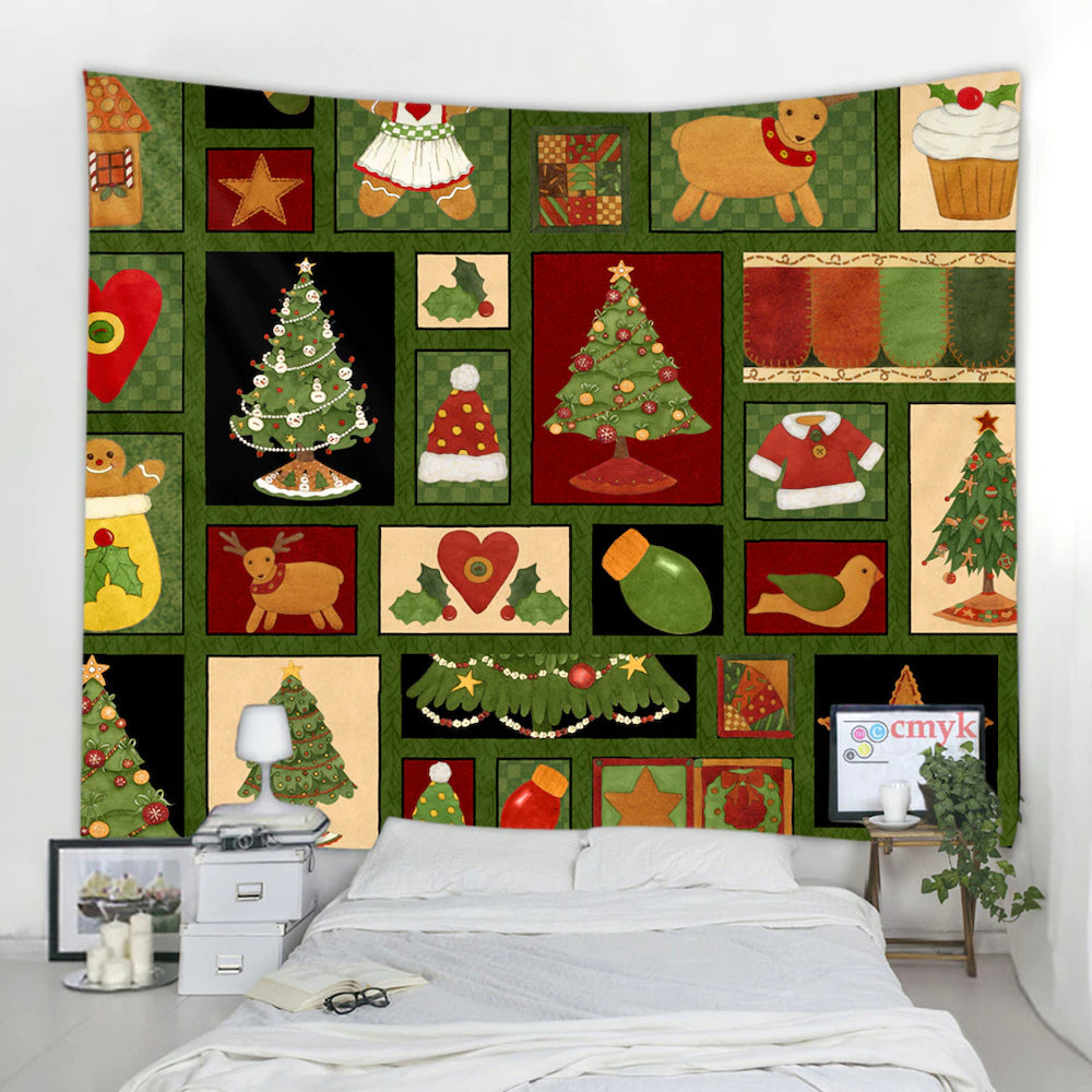 Cartoon Christmas Illustration Tapestry Wall Hanging Tapis Cloth has exquisite colors and clean finishing, making it a fantastic focal point for any room. These high-quality tapestries are intended to add a fashionable touch to your living room, hallway, or bedroom. This beautiful tapestry can be used as a Christmas decoration item too. You will adore how it enhances the look of any space.