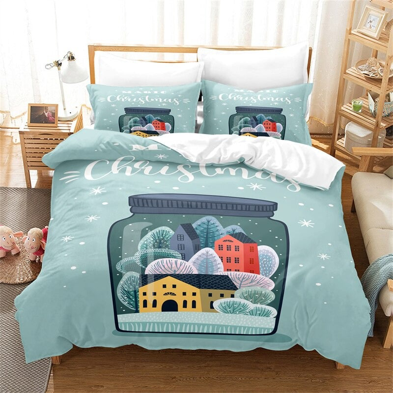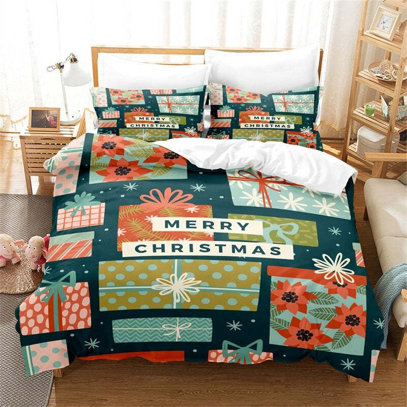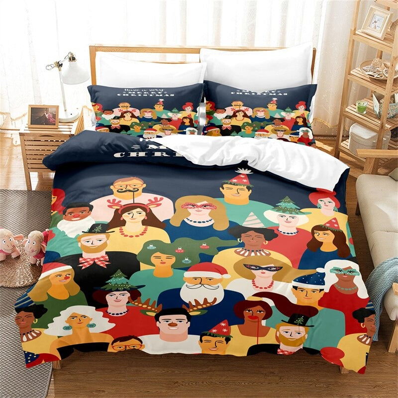 This beautiful Cartoon Christmas Print Duvet Cover Set is the perfect way to add festive cheer to your bedroom. The cheerful cartoon characters, festive colors, and subtle snowflake pattern will give your bedroom a cozy wintery feel. The cotton fabric is comfortable and breathable, perfect for those cold winter nights. The set is easy to care for and includes one duvet cover and two pillowcases. Transform your bedroom into a winter wonderland with this fun and festive set.