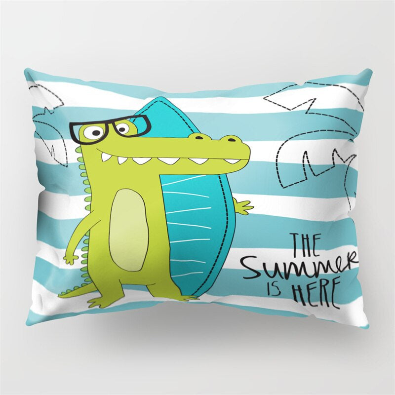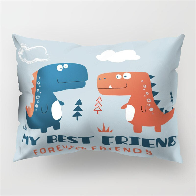Cartoon Dinosaur Printed Rectangular Pillow Cover resembles your favorite dinosaur cartoon character. The cover is available in different styles that give you a wide range of choices to choose from. It is made of polyester and follows a woven technique making it very soft to the touch.