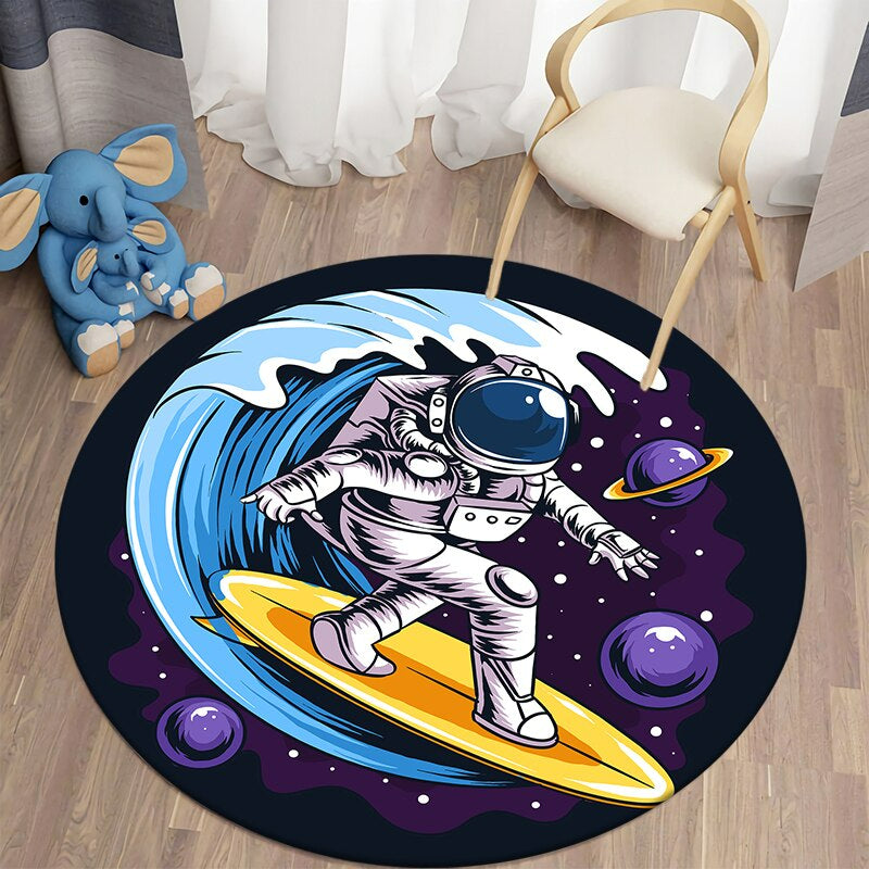 Cartoon Spaceman Decorative Round Mat has a print of amazing space characters from your favorite shows. It cannot go unnoticed and it has the finest texture. The mat has a modern style and follows a printed pattern type. The high-density super soft fabrics offer good ventilation and excellent breathability.