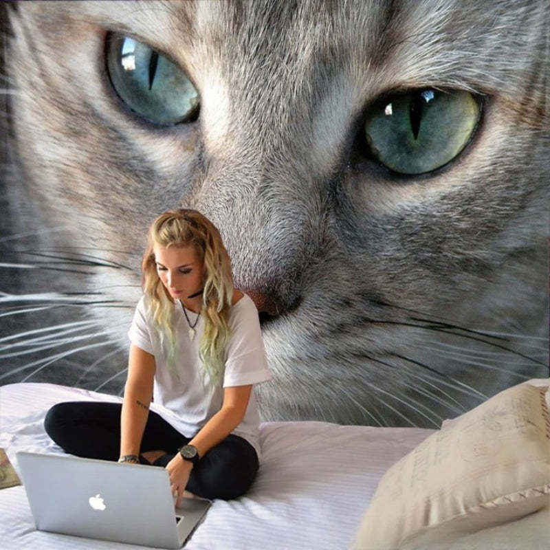 Cat Eyes Tapestry Wall Hanging Tapis Cloth has exquisite colors and a clean finish, making it a fantastic focal point for any room. These high-quality tapestries are intended to add a fashionable touch to your living room, hallway, or bedroom. This Cat Eyes Tapestry Wall Hanging Tapis Cloth is a must-have for any cat lover.