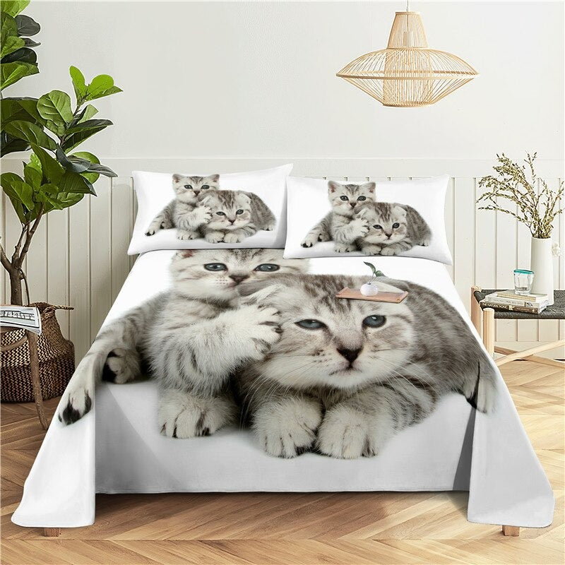 This Cat Print Bedding Set fitted sheet is made of a delicate and agreeable polyester material that is delicate on the skin and simple to really focus on. The cover includes a striking and energetic print, which makes certain to add a pop of variety to any sheet material outfit. The sheet is intended to fit cozily over most standard bedding.