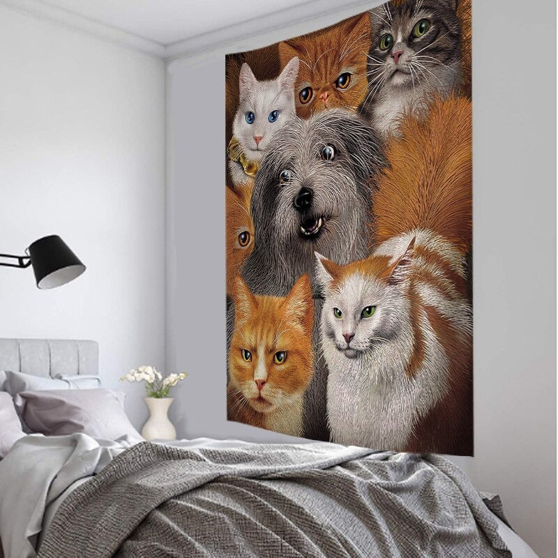 Cats And Dogs Tapestry Wall Hanging Tapis Cloth has exquisite colors and clean finishing, making it a fantastic focal point for any room. These high-quality tapestries are intended to add a fashionable touch to your living room, hallway, or bedroom.
