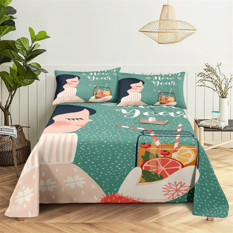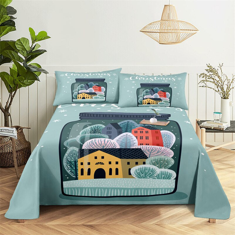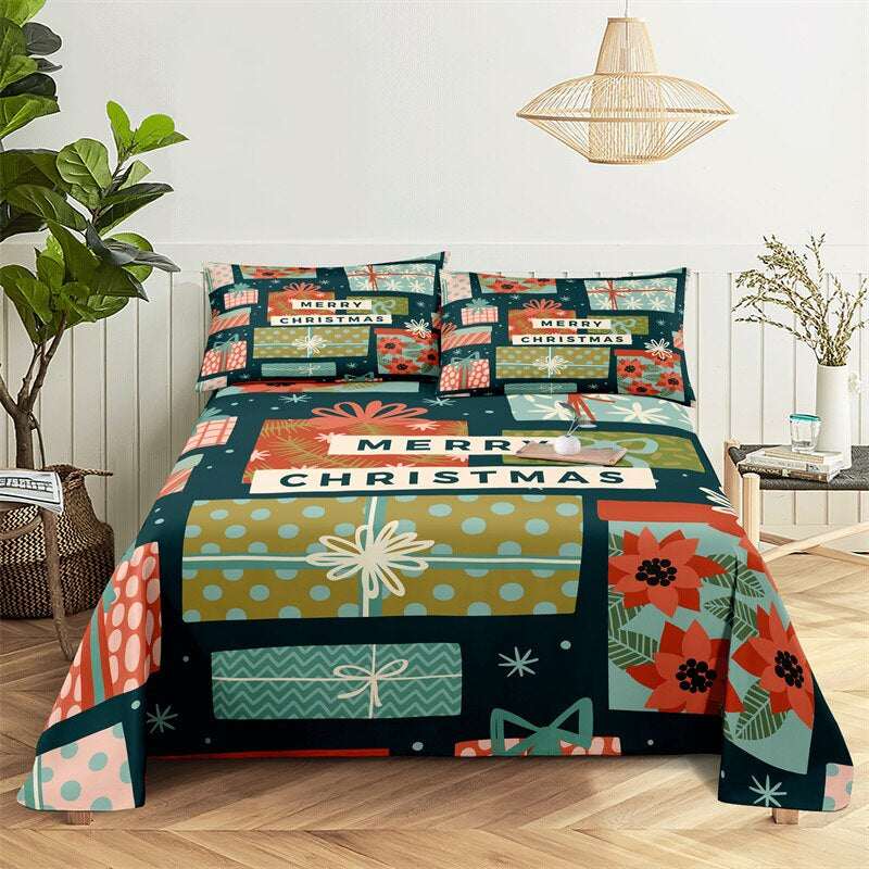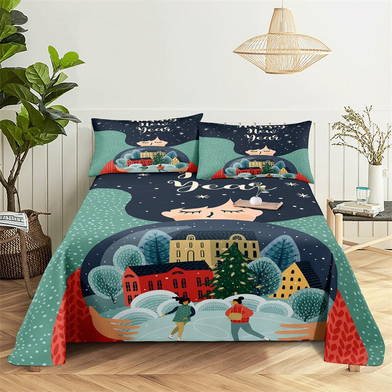 This Christmas Children's Bed Sheet Set is perfect for your family and friends to get warm in winter. This gorgeous bedding set is made of 100% cotton and polyester and has a lightweight sheet and pillowcase. Its bright colors will make this sheet set stand out in any room. The high thread count ensures that your sheets stay smooth and itch-free so you will have no more uncomfortable bedding experiences!