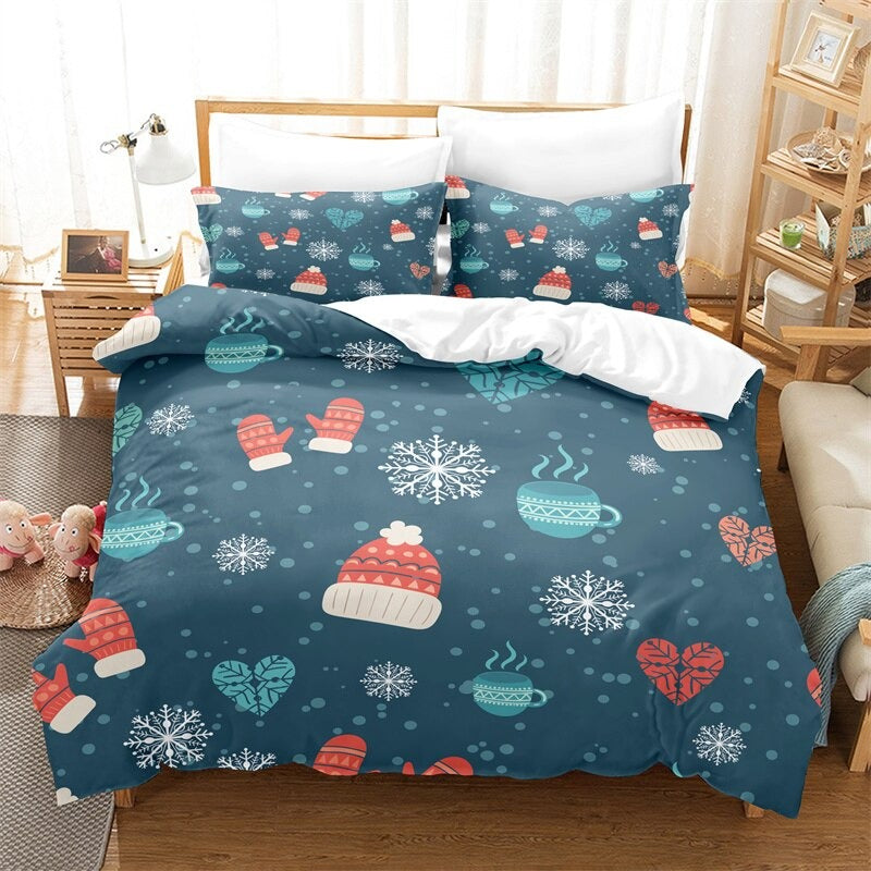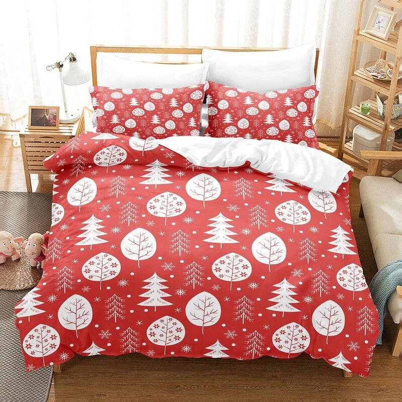 Spread holiday cheer with this lovely Christmas Duvet Cover Bedding Set! This cheerful set features a festive pattern of snowflakes, snowmen, and Christmas trees on a red background. This comfy set is made from high-quality microfiber fabric for ultimate comfort and longevity. The duvet cover and pillowcases are easy to care for and machine-washable. Bring the spirit of the season into your bedroom with this beautiful Christmas Duvet Cover Bedding Set!
