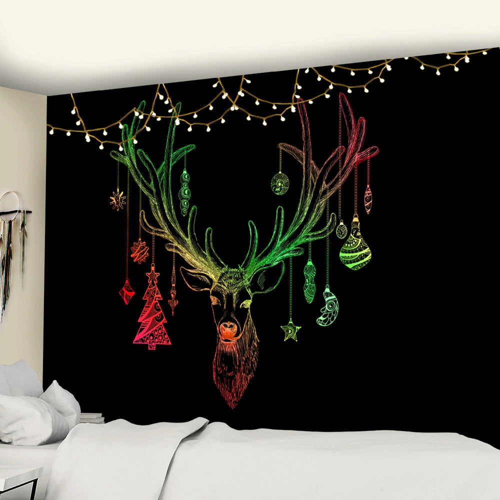 Christmas Reindeer Tapestry Wall Hanging Tapis Cloth has exquisite colors and clean finishing, making it a fantastic focal point for any room. These high-quality tapestries are intended to add a fashionable touch to your living room, hallway, or bedroom.