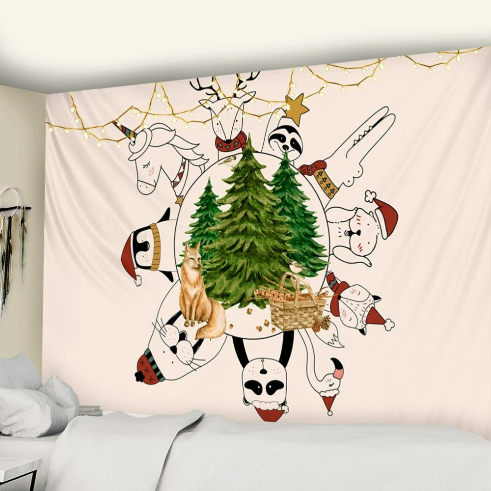 Christmas Season Tapestry Wall Hanging Tapis Cloth has exquisite colors and clean finishing, making it a fantastic focal point for any room. These high-quality tapestries are intended to add a fashionable touch to your living room, hallway, or bedroom.