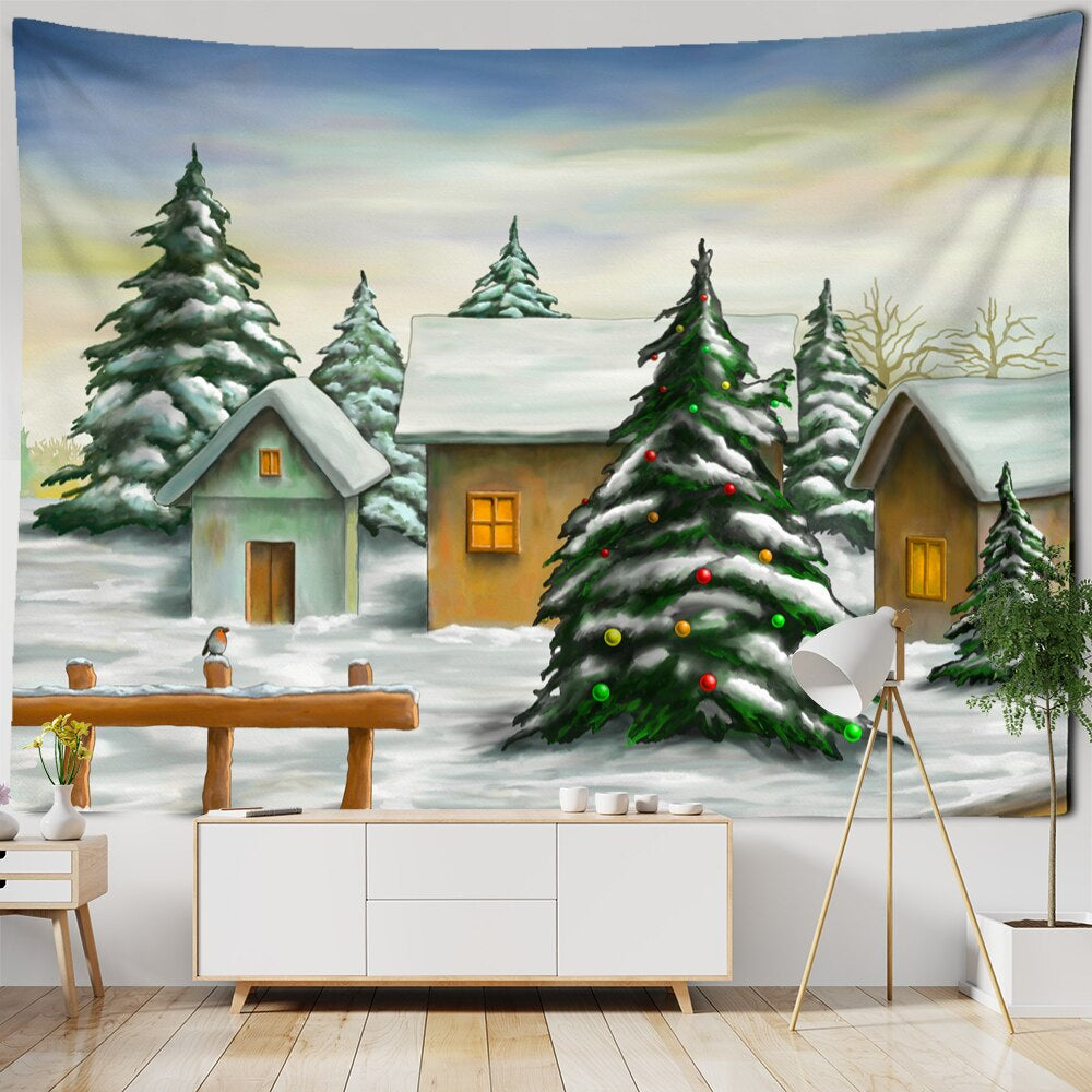 High Quality: Christmas Tree Series Tapestry Wall Hanging Tapis Cloth has clear prints, rich colors, soft and skin-friendly material, and does not fade.