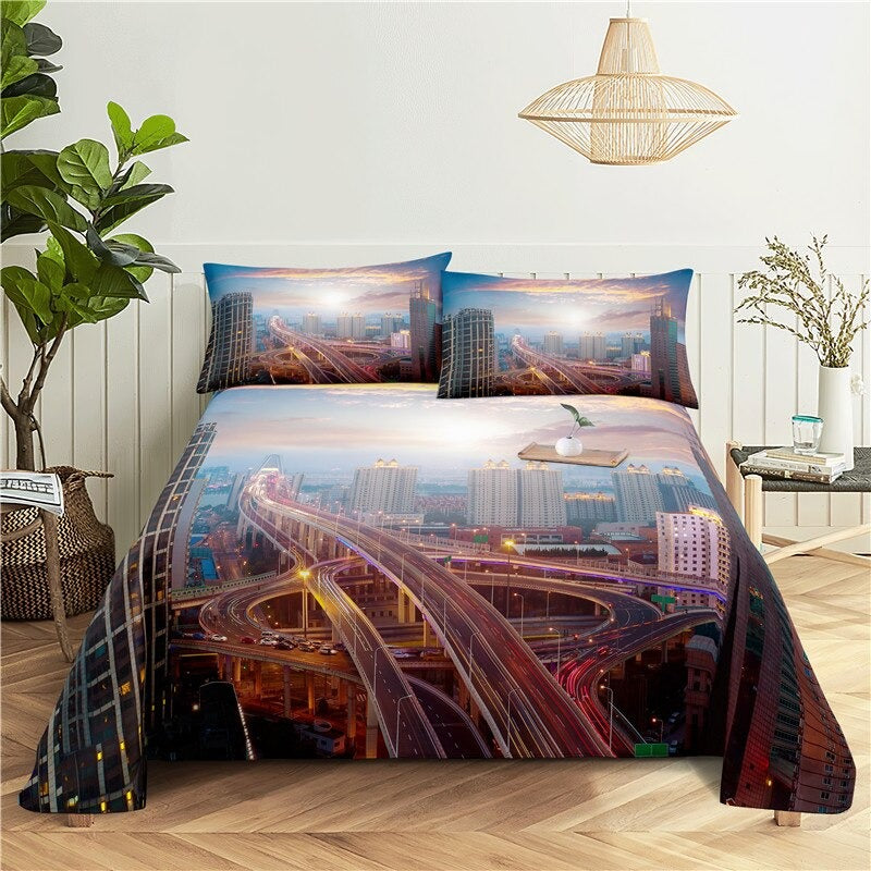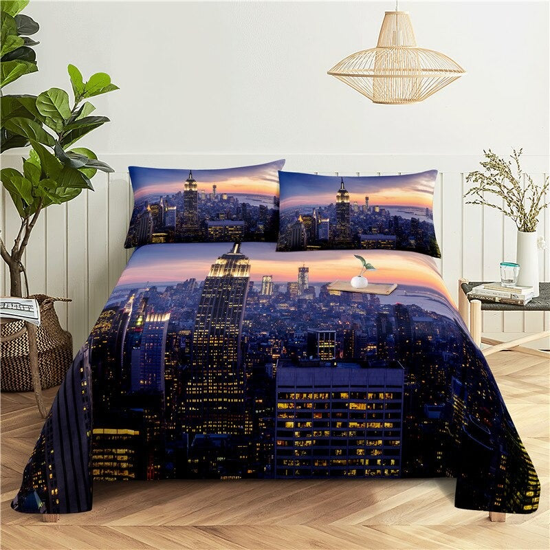 City Night Scene Digital Print Bedding Set is a stunning and vibrant addition to any bedroom. Made from high-quality polyester material this bedding set is soft comfortable and durable. The detailed print captures the energy and excitement of the city with bright lights and tall buildings. The bold colors and sharp lines of the print are sure to make a statement in any room. Whether you are a city lover or just appreciate the sleek and modern look this bedding set is sure to become a favorite.