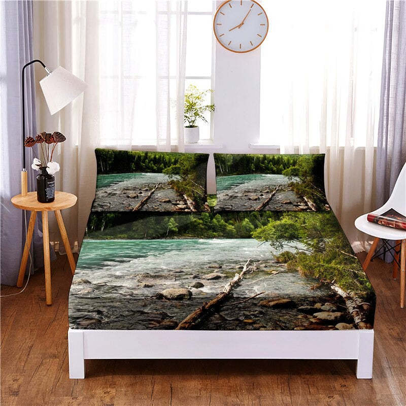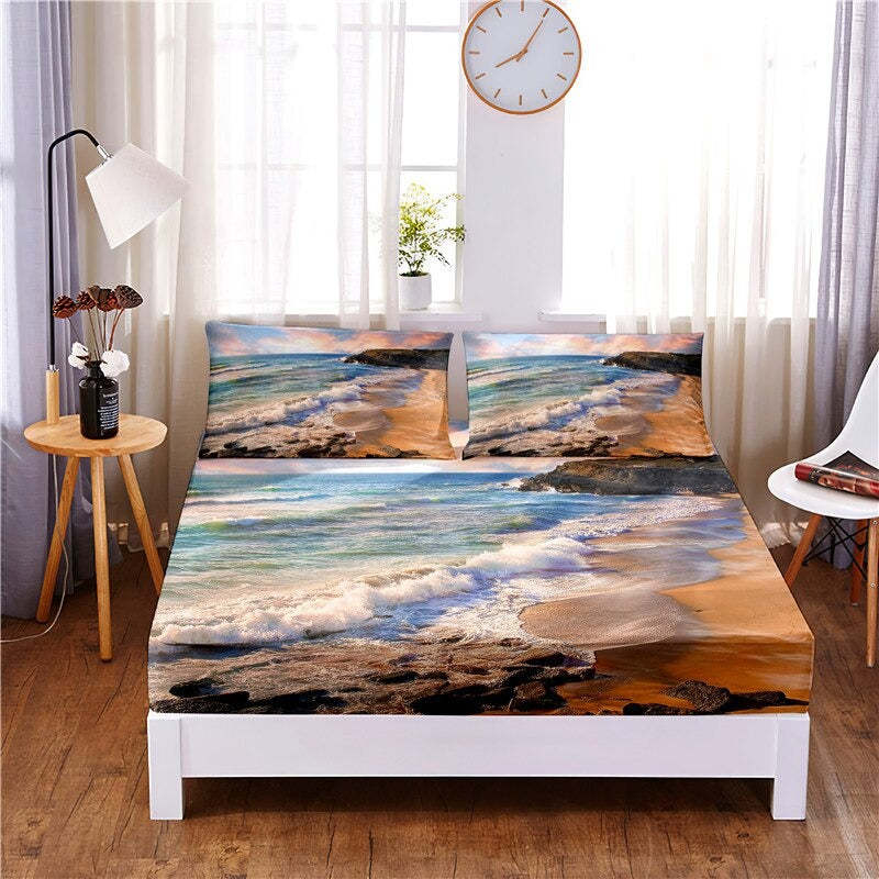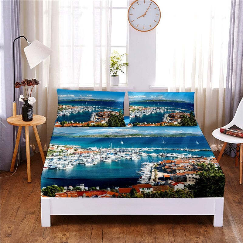Coastline Digital Printed Bedsheets & Pillowcases is a modern and trendy addition to any bedroom. Made of high-quality polyester material the bedding set is soft comfortable and durable. The polyester material is also easy to care for and maintain as it is machine washable and quick-drying whether you are looking for a stylish and contemporary bedding set or want to add a touch of modernity to your bedroom.
