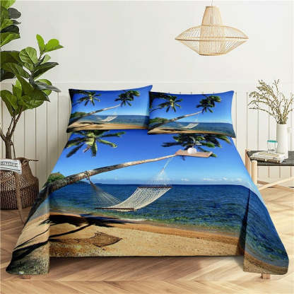 Coconut Tree Bed Flat Bedding Set is made of soft and durable polyester material providing a comfortable and long-lasting addition to your bed. This bedding set features a vibrant and tropical design depicting a lush coconut tree on a white background. The polyester material is machine washable making it easy to care for and maintain.