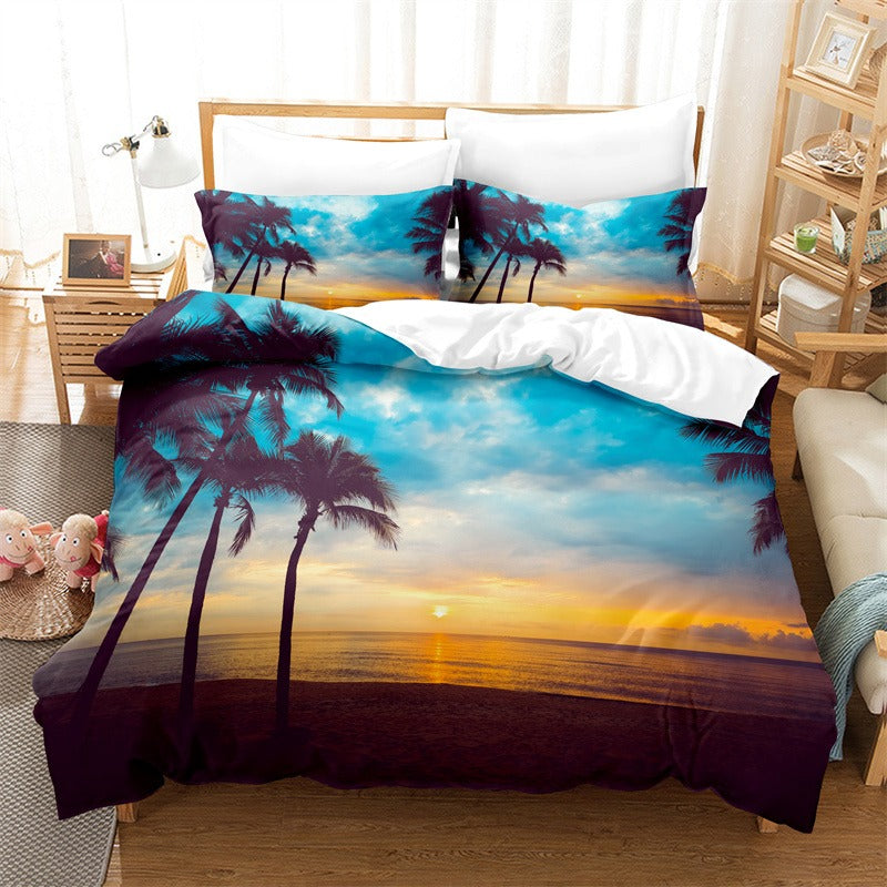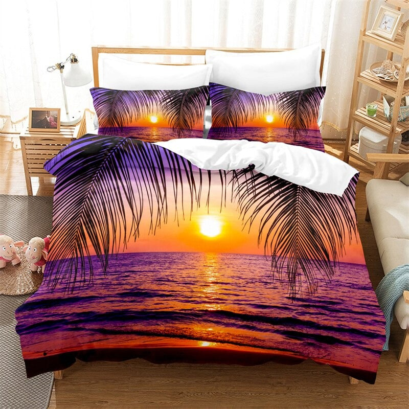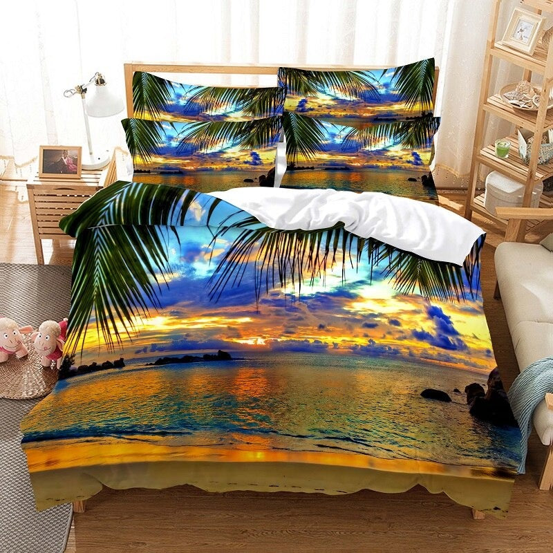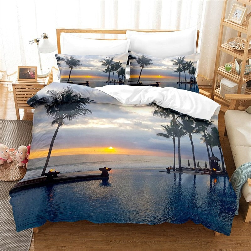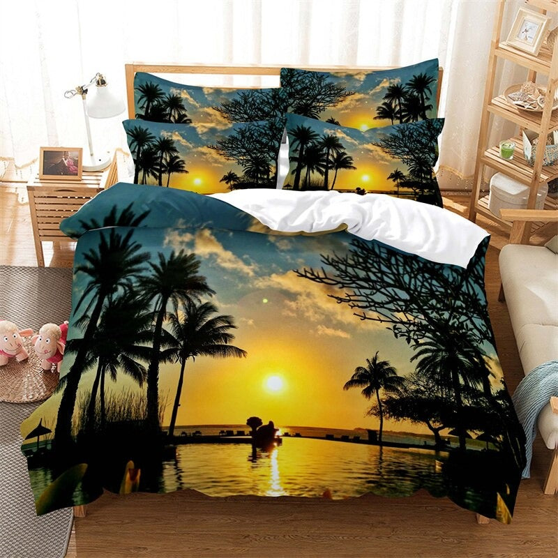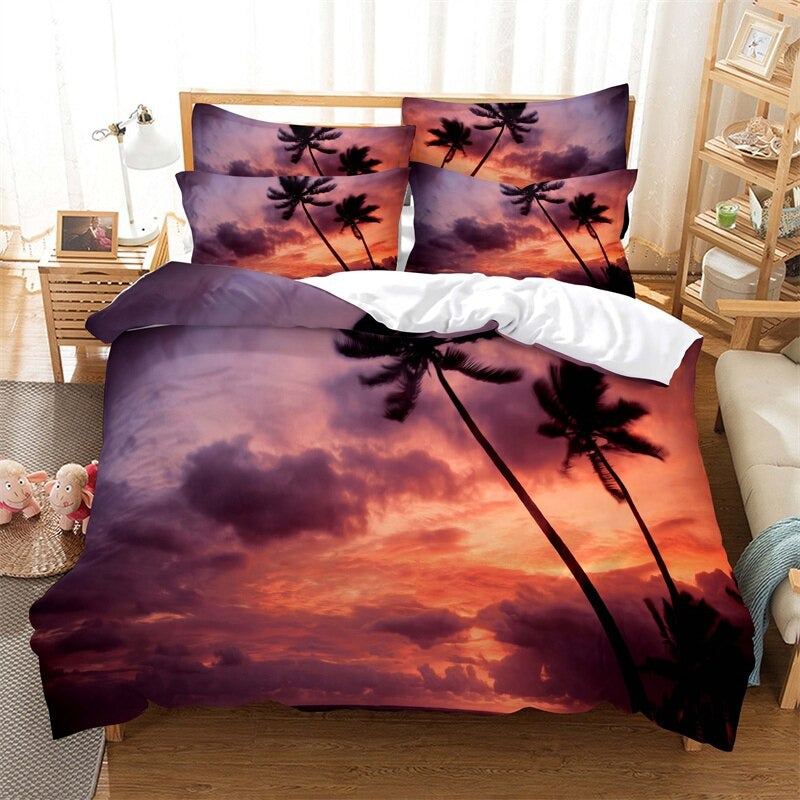Coconut Trees Beach Duvet Cover Set is a modern and trendy addition to any bedroom. Made of high-quality polyester material the bedding set is soft comfortable and durable. The polyester material is also easy to care for and maintain as it is machine washable and quick drying whether you are looking for a stylish and contemporary bedding set or want to add a touch of modernity to your bedroom.