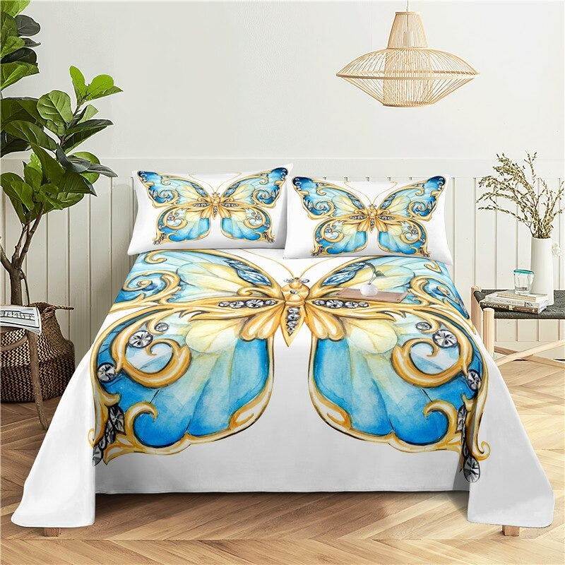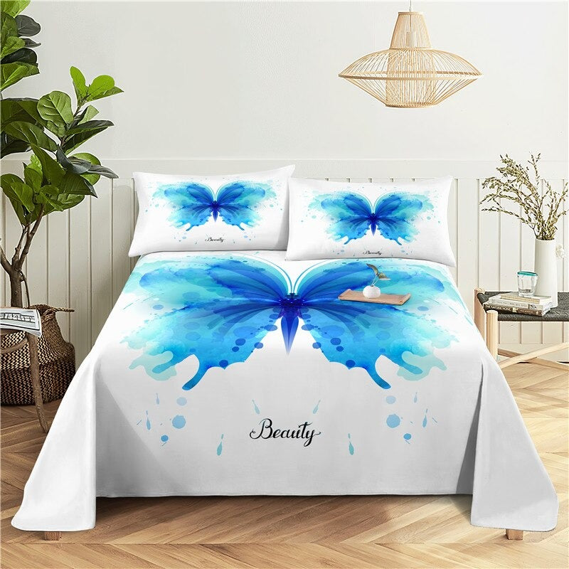 Colorful Butterfly Bed Flat Bedding Set is a colorful mix of shades and the butterflies are big and bright, but not overpowering. This is a set of 2 pieces, with a bedsheet and pillowcases. This bedding set features a modern pattern with colorful butterflies. It's made from polyester, which is a good material for any age. The pattern will look great in any room in your home. The sheets and pillowcases have a beautiful and delicate design that will make you smile every time you look at them.