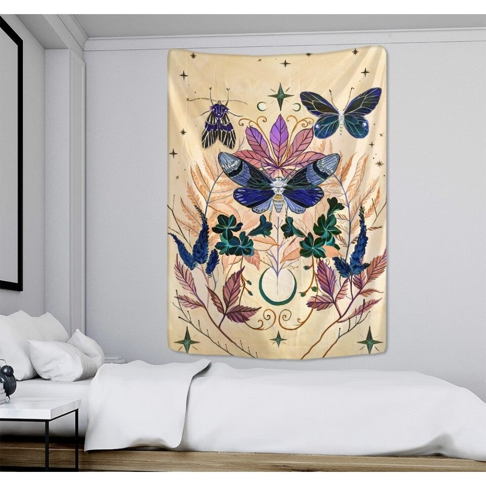 Colorful Butterfly Mushroom Tapestry Wall Hanging Tapis Cloth has exquisite colors and clean finishing, making it a fantastic focal point for any room. These high-quality tapestries are intended to add a fashionable touch to your living room, hallway, or bedroom.