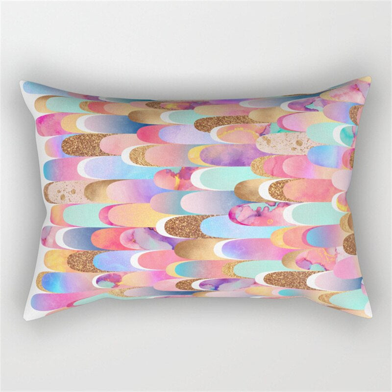 The Colorful Geometric Pattern Printed Rectangular Pillow Cover has a digital print of mirror patterns. This unique design gives the cover a very classy appearance. It is soft to the touch and is made with the finest polyester. You can choose from the wide range of choices available.