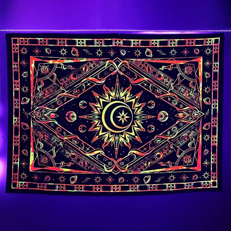 Colorful Sun Tapestry Wall Hanging Tapis Cloth has exquisite colors and clean finishing, making it a fantastic focal point for any room. These high-quality tapestries are intended to add a fashionable touch to your living room, hallway, or bedroom.