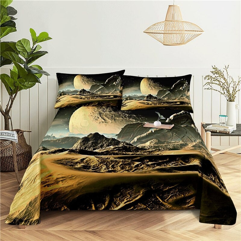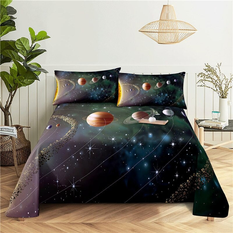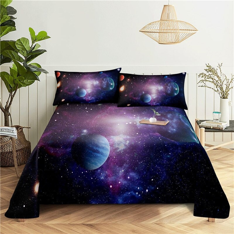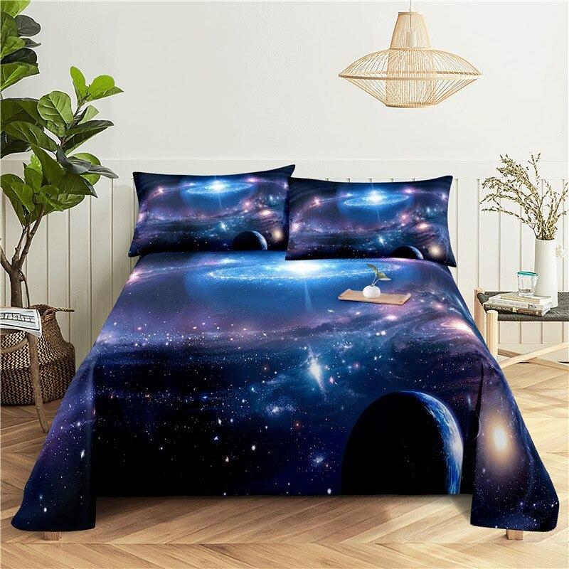 Bring your child's bedroom to life with this Cosmic Planet 3D Print Bedding Set. This set features an eye-catching 3D design of planets, stars, and galaxies that will add a touch of intergalactic flair to your kid's room. Made from high-quality microfiber fabric, this set is ultra-soft, breathable, and wrinkle-resistant, making it perfect for a restful night's sleep. The set includes a matching quilt cover and pillowcases, so you can easily create an out-of-this-world bedroom look. Plus, it's available in a variety of sizes, so you can find the perfect fit. Transform your kid's bedroom into a cosmic wonderland with this Cosmic Planet 3D Print Bedding Set.