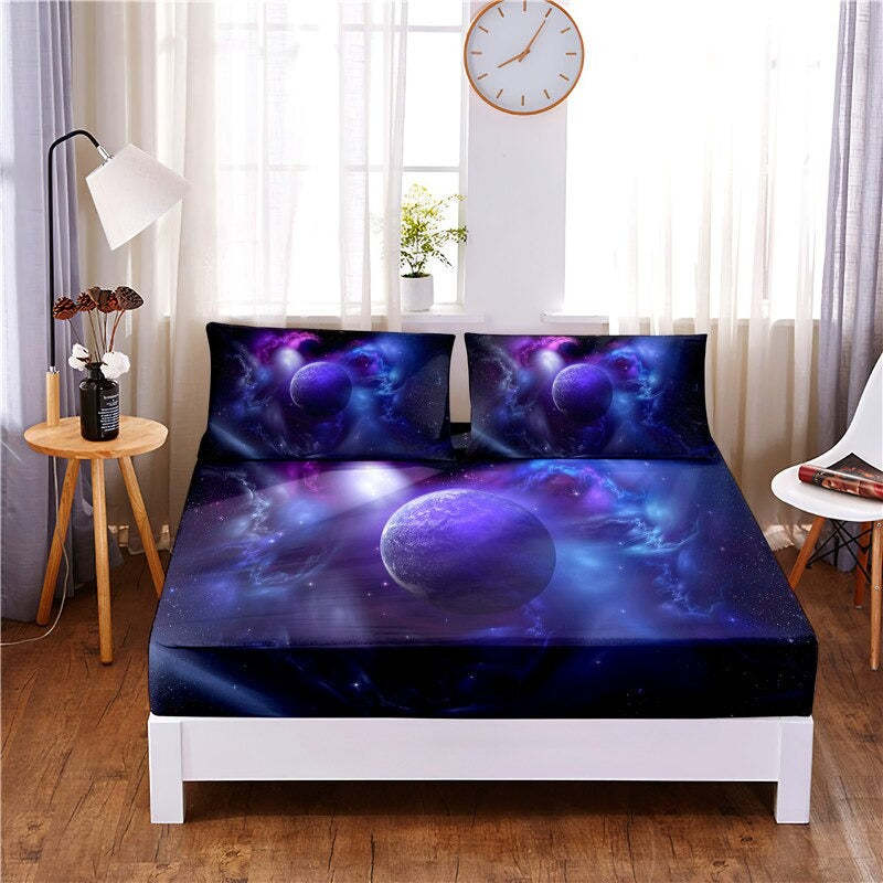 The Cosmic Planets Digital Printed Mattress Cover is ideally suited for any individual who appreciates space and needs to bring a bit of the planet into their home. The serene and quiet scenes portrayed on the sheet material will help you unwind and loosen up following a monotonous day, giving you a tranquil and relaxing night's rest.