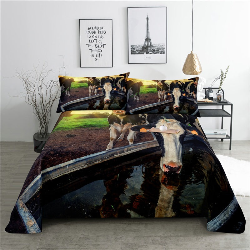 Cow Digital Print Bedding Set is a fun and playful addition to any bedroom. Made from soft and durable polyester material this bedding set is perfect for snuggling up at night. The print features high-quality digital printing of cute cows in a field adding a touch of whimsy and charm to the room.