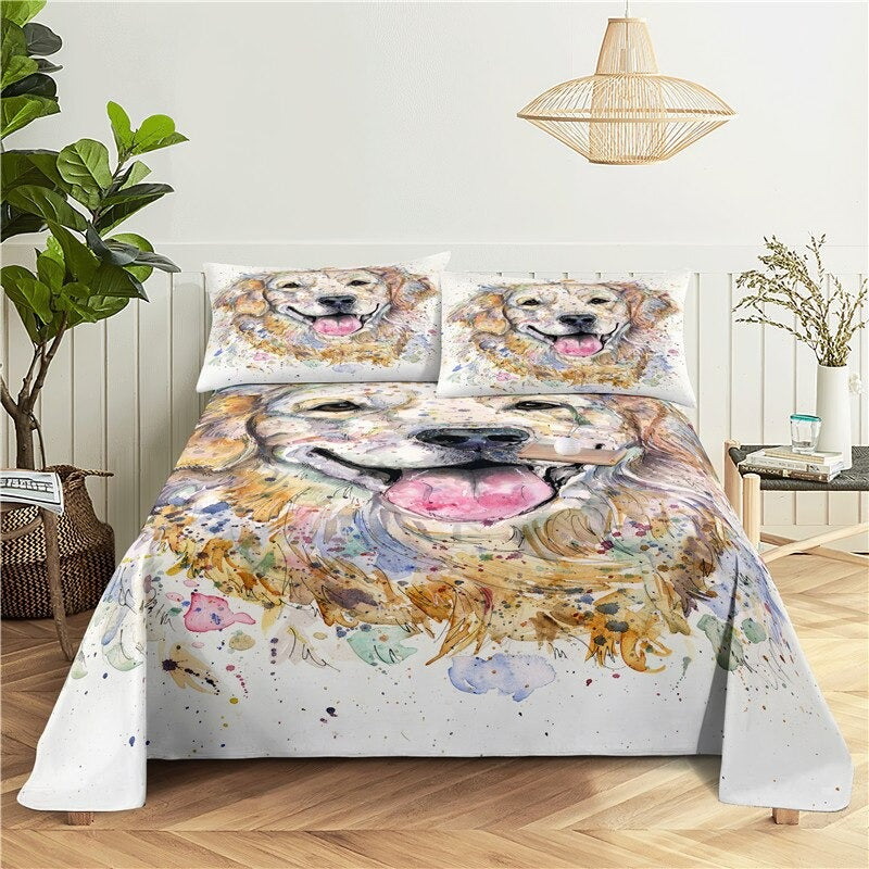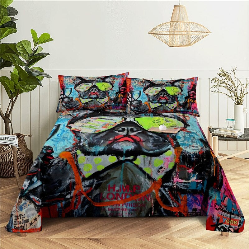 This Creative Animal Printing Bed Flat Bedding Set is sure to be a hit with kids and adults alike! Whether it's a kid's bedroom, a guest room, or a college dorm, this stylish and fun set is a great addition to any décor. Featuring a variety of animal prints in bright and vibrant shades, this bedding set is sure to make a statement. The bedding set includes one flat sheet, one fitted sheet, and two pillowcases to complete the look. The fitted sheet is made of ultra-soft and breathable 100% polyester, for a comfortable night's sleep. The flat sheet and pillowcases are crafted with an easy-care polyester blend, making them perfect for everyday use. This bedding set is machine washable for easy cleaning, making it an ideal choice for busy households.