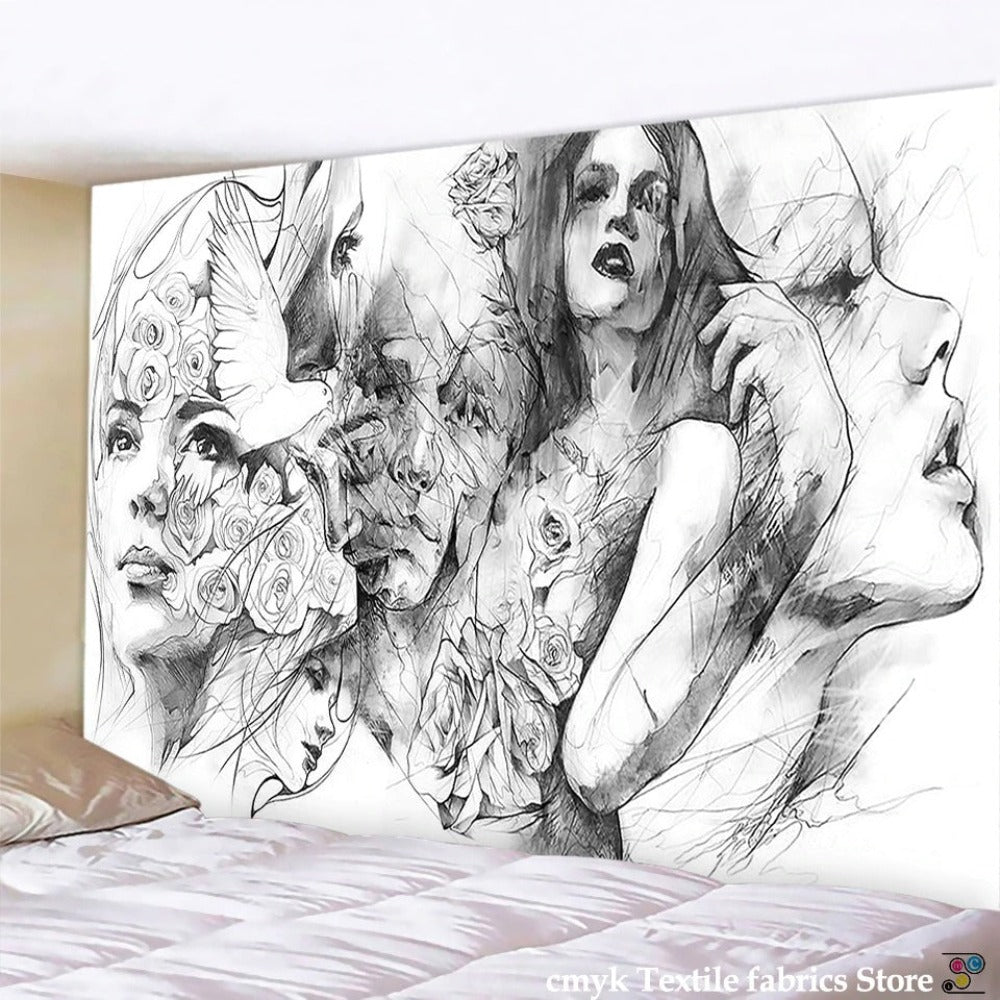 Creative Line Draw Tapestry Wall Hanging Tapis Cloth has exquisite colors and clean finishing, making it a fantastic focal point for any room. These high-quality tapestries are intended to add a fashionable touch to your living room, hallway, or bedroom.