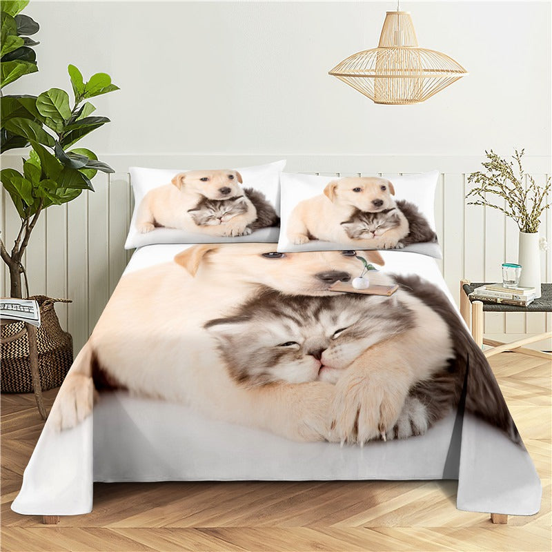 Dog Face Print Bed Flat Bedding Set is a cute and playful choice for any bedroom. Made of polyester a synthetic material known for its durability and easy care this bedding set features a print of dog faces on the fabric. The bed flat which is a large rectangular piece of fabric that is placed on top of the mattress is the main focus of this bedding set and is designed to be a charming and fun addition to the bed.