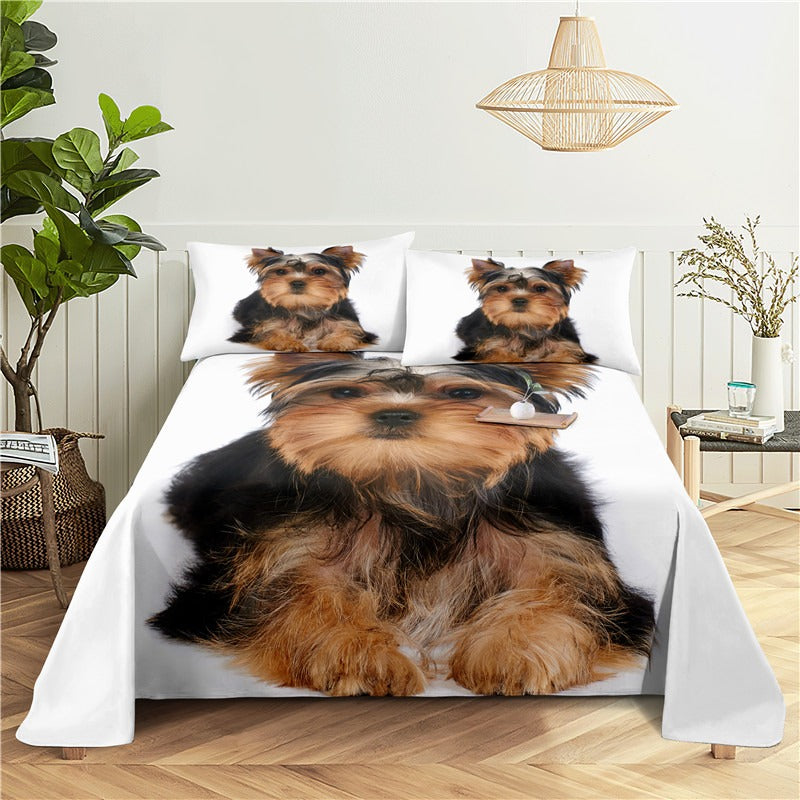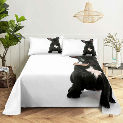 Dog Face Print Bedding Set is a cute and playful choice for any bedroom. Made of polyester a synthetic material known for its durability and easy care this bedding set features a print of dog faces on the fabric. This bedding set is a great choice for those who love dogs or want to add a touch of whimsy to their bedroom decor. It can be paired with solid-colored accents for a more cohesive look or mixed and matched with other patterns and prints for a more eclectic style.