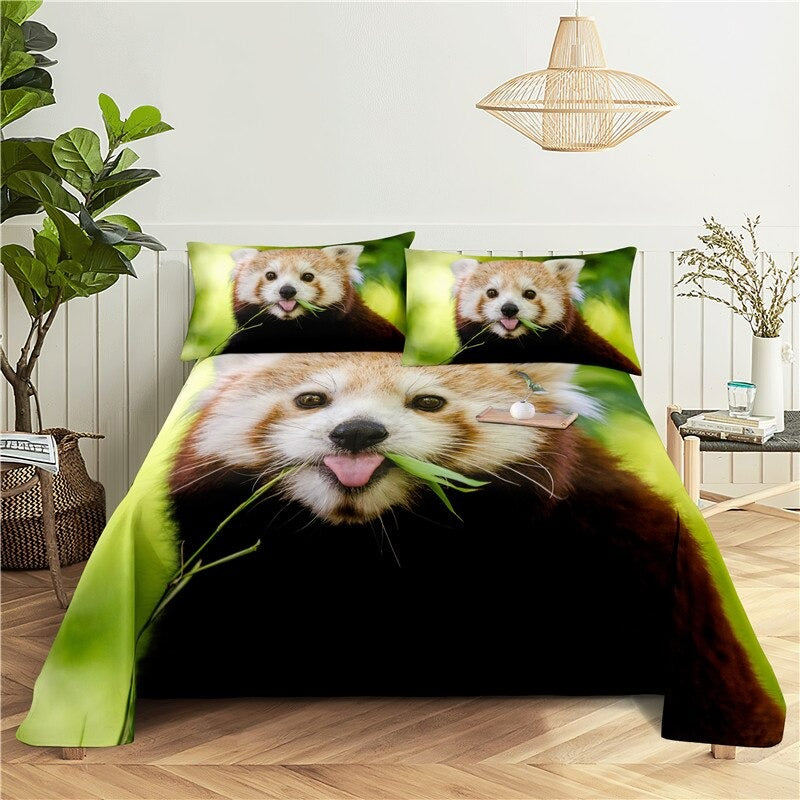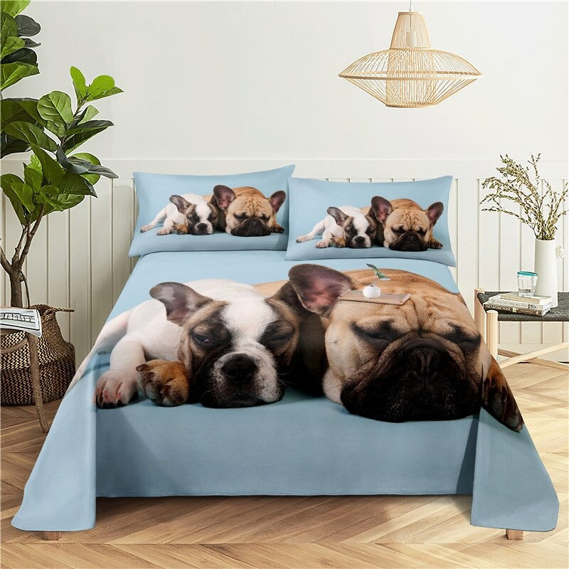 Dog Woof Printed Flat Bedding Set is made of polyester material and features a fun and playful print of dogs. The polyester material is durable and easy to care for making it a practical choice for everyday use. It is also soft and comfortable, ensuring a good night's sleep. This bedding set is suitable for all bed sizes and is sure to be a hit with dog lovers of all ages.