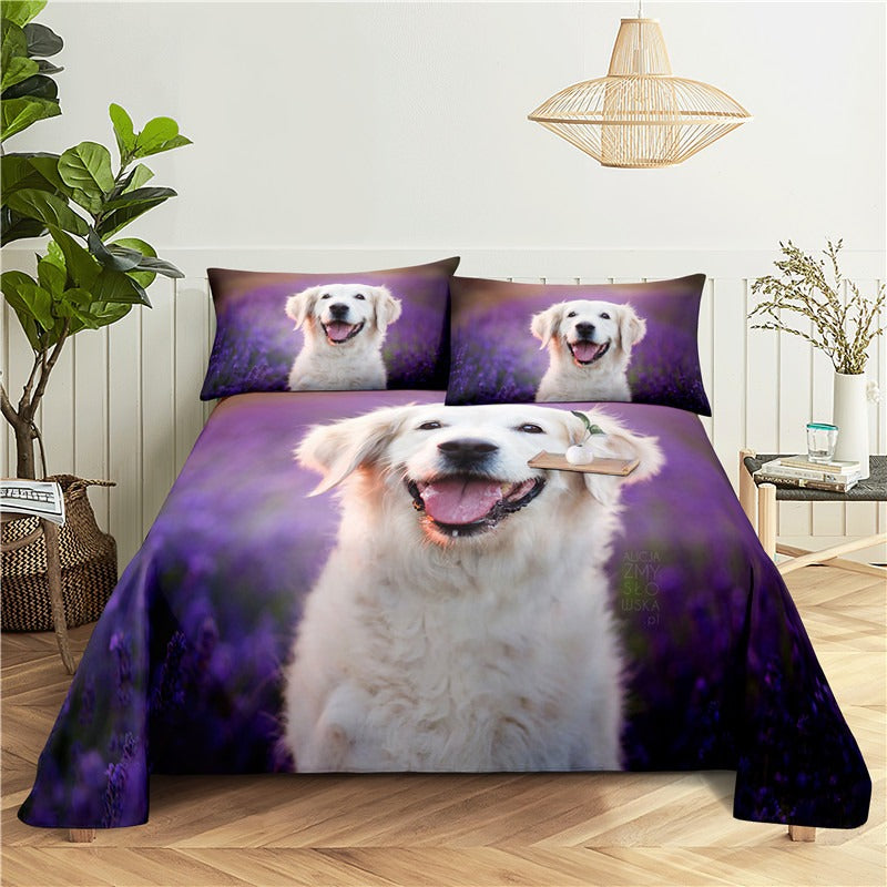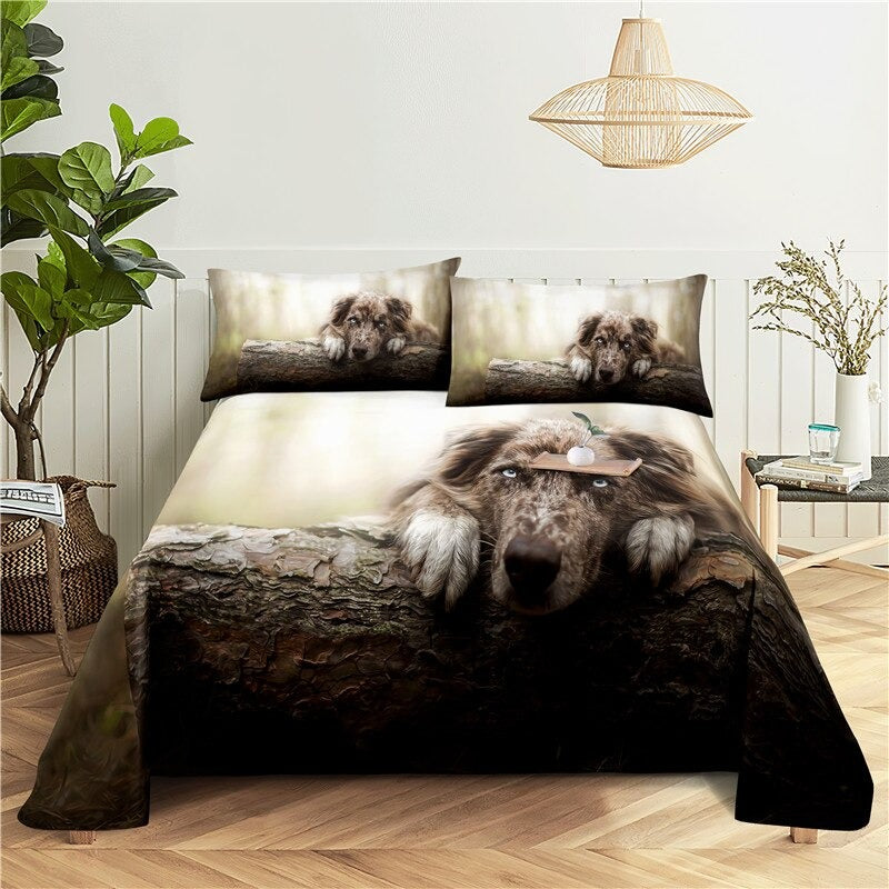Our Dogs Digital Printed Polyester Bed Sheet Set adds a touch of sophistication and whimsy to any bedroom. The high-quality polyester material is soft to the touch and ensures a comfortable night's sleep. The bold and vibrant digital print features a variety of playful pups, adding a pop of color and personality to your bedding. These sheets are machine washable for easy care and maintenance. Upgrade your sleep space with our Dogs Digital Printed Polyester Bed Sheet Set.