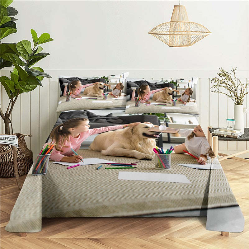 Dogs Print Bed Flat Bedding Set is a playful addition to any bedroom. Made of high-quality polyester material these bedding sets are soft durable and easy to care for. The adorable and lifelike dog print design is perfect for anyone who loves these loyal and loving animals and wants to bring a touch of their furry friend into their bedroom.