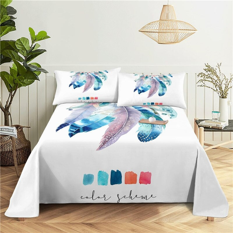 The Dream Catcher Printed Bedding Set is a stylish and comfortable bedding option made from high-quality polyester material. The set includes a duvet cover and two pillowcases, all featuring a stunning dream catcher design in shades of blue, purple, and white. The polyester material is soft to the touch and provides a cozy night's sleep, while the vibrant colors and patterns add a touch of whimsy and charm to any bedroom.
