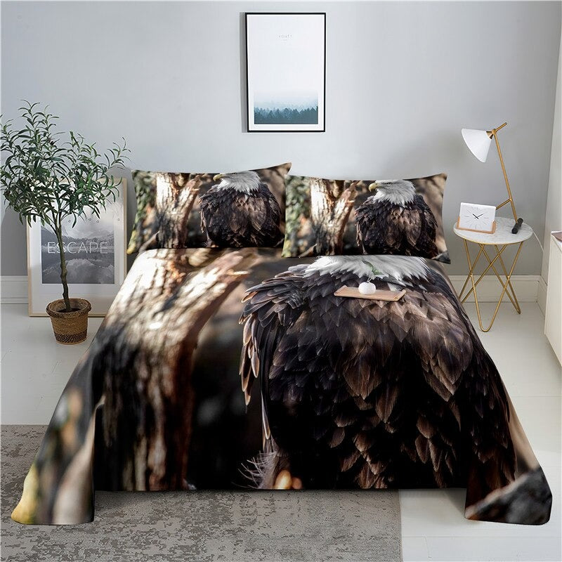 Eagle Digital Printing Bedding Set is a bold and majestic addition to any bedroom. Made from high-quality polyester material this bedding set is soft comfortable and durable. The detailed and lifelike print captures the power and grace of this iconic eagle bird of prey. The bold colors and sharp lines of the print are sure to make a statement in any room. Whether you are a bird lover or just appreciate a strong and majestic design this bedding set is sure to become a favorite.