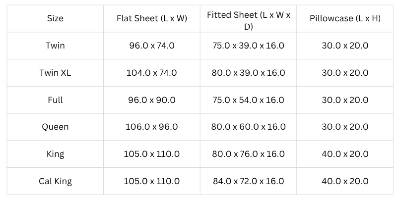 Flax Sheet Set Composition Includes a flat sheet a fitted sheet and two pillowcases. Sizes range from Twin to California King.
