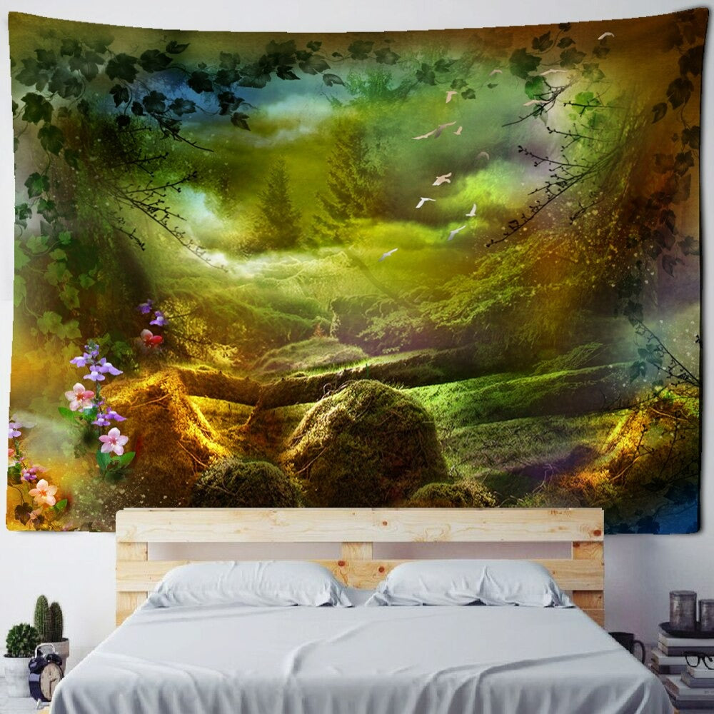 Fantasy Forest Tapestry Wall Hanging Tapis Cloth has exquisite colors and clean finishing, making it a fantastic focal point for any room. These high-quality tapestries are intended to add a fashionable touch to your living room, hallway, or bedroom.