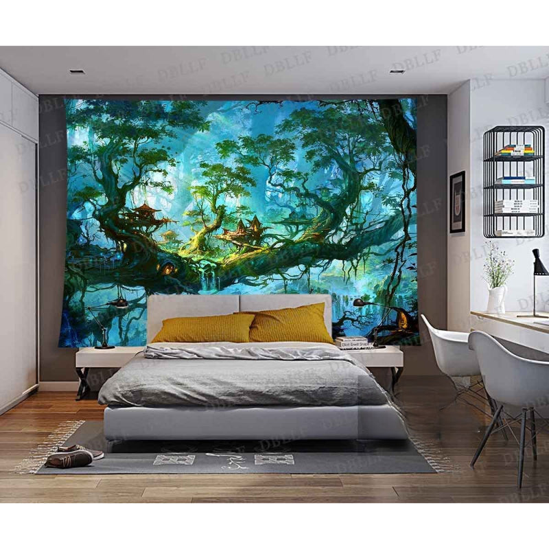 With this fantasy world Tapestry, you may improve your home and give it a forest-like feel. The distinctive design of the nature-inspired tapestry stands out, harmonizes perfectly with your wall, and features a tree pattern that makes it even more attractive to reflect your room at night. They are made of high-quality cotton and have a landscape design, which adds to their charm. Based on the options and the area at your disposal, select the size you desire.