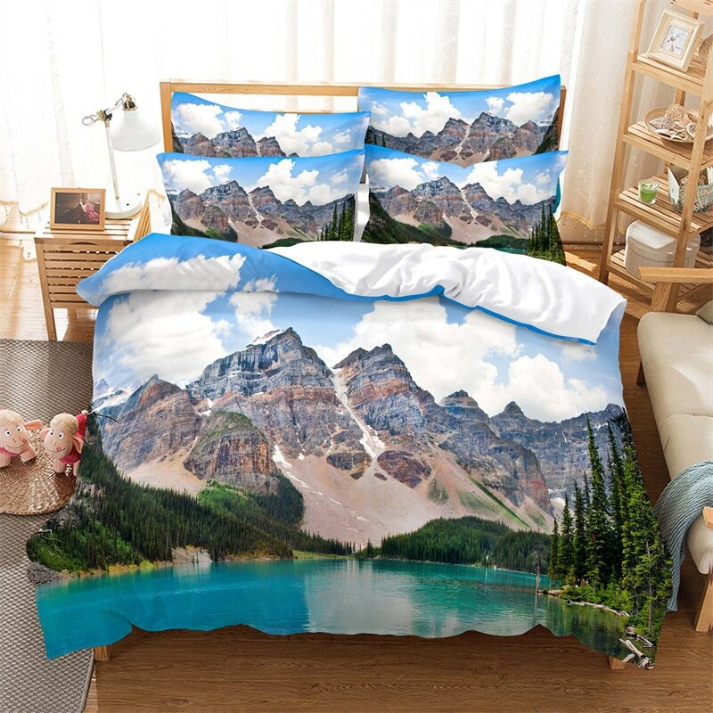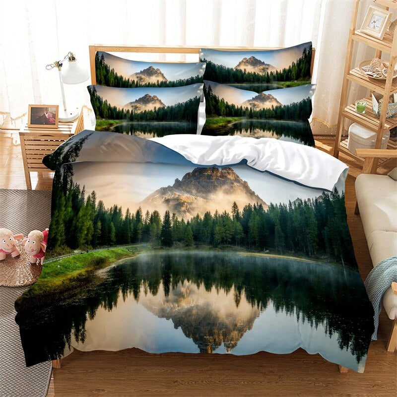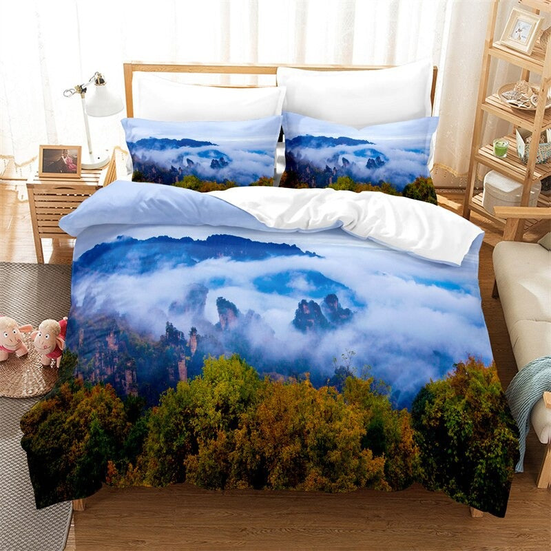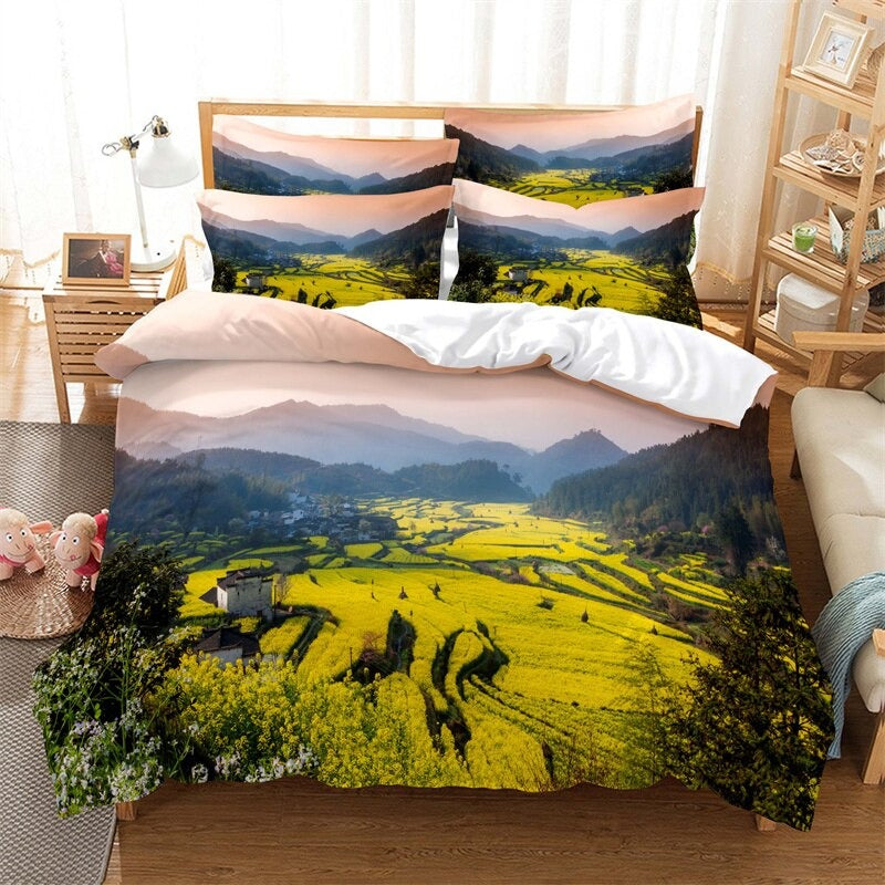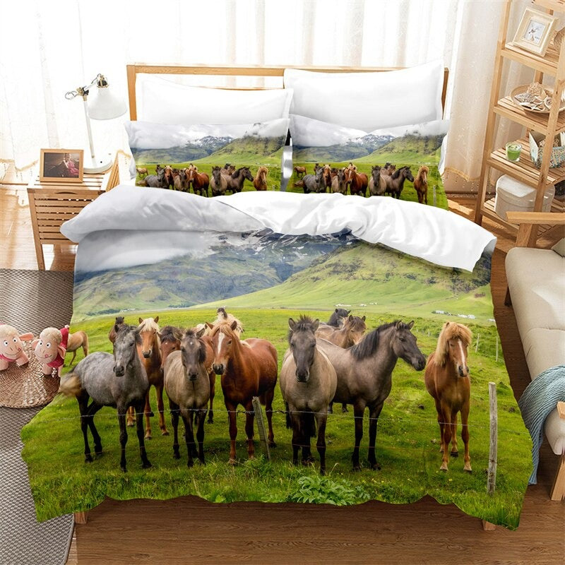 Fashion Landscape Scenery Horse Duvet Cover Set is made from 100% polyester and features a microfiber, polyester fabric, this duvet cover that is both durable and comfortable. The print design is a stunning landscape scenery with horses, adding a touch of nature to your decor. This duvet cover is of high quality and is sure to last.