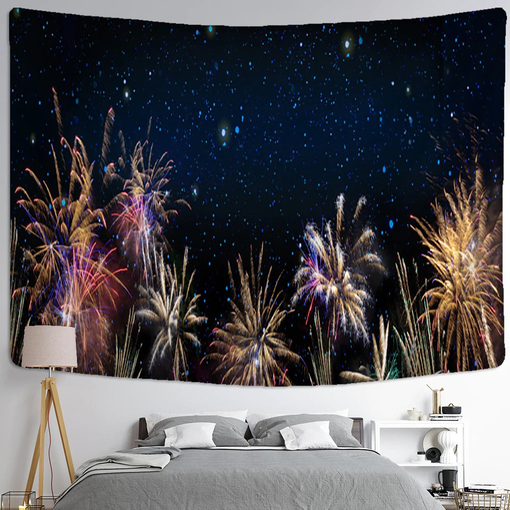 High Quality: Fireworks Starry Sky Tapestry Wall Hanging Tapis Cloth has clear prints, rich colors, soft and skin-friendly material, and does not fade.