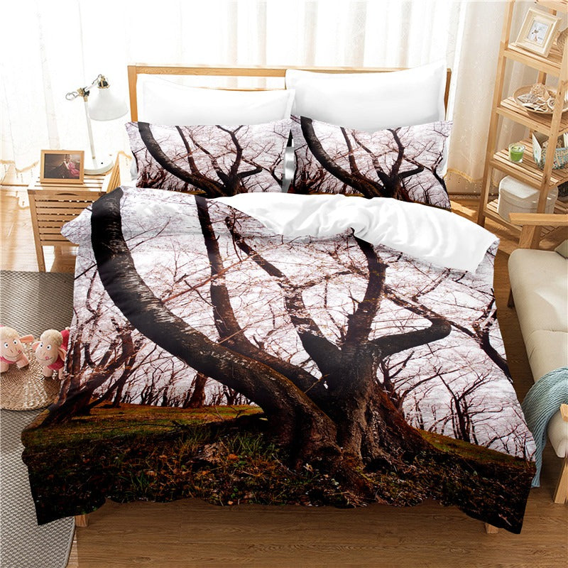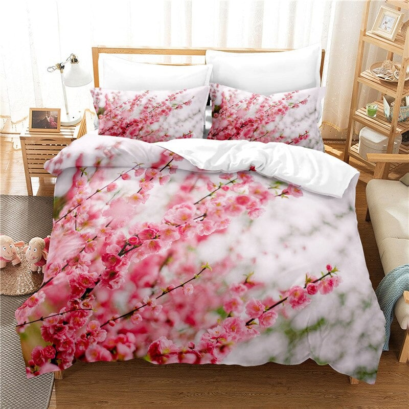 The Flowers And Trees Digital Printed Bedding Set features beautiful digital prints of flowers and trees. This digitally printed bedding set includes a fitted sheet and pillowcases. The flowers and trees are so beautiful, they'll make any room in your home feel like a garden! It is made of high-quality polyester material which is soft and wrinkle resistant.
