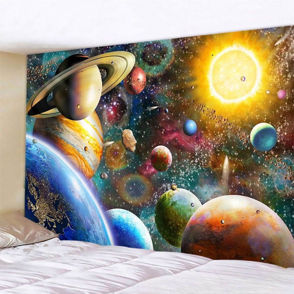 This Galaxy Planets Tapestry Wall Hanging Tapis Cloth has exquisite colours and clean finishing, making it a fantastic focal point for any room. These high-quality tapestries are intended to add a fashionable touch to your living room, hallway, or bedroom.