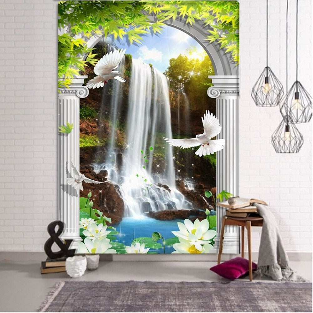 Garden Nature Landscape Tapestry Wall Hanging Tapis Cloth has exquisite colors and clean finishing, making it a fantastic focal point for any room. These high-quality tapestries are intended to add a fashionable touch to your living room, hallway, or bedroom.