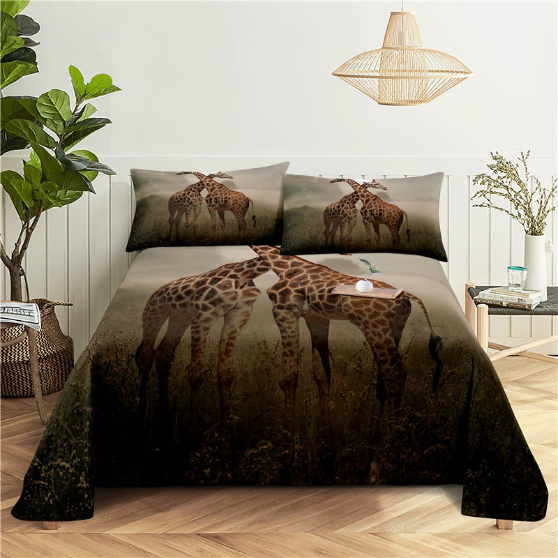 Giraffe Print Bedding Set is a stylish and unique addition to any bedroom. Made of soft and durable polyester this bedding set is sure to provide a comfortable and cozy night's sleep. The giraffe print adds a touch of exotic flair to any room making it the perfect choice for those with a love for animals or a fascination with the natural world.