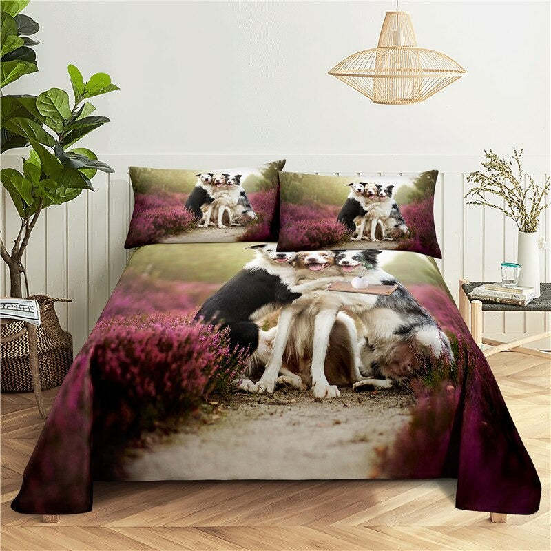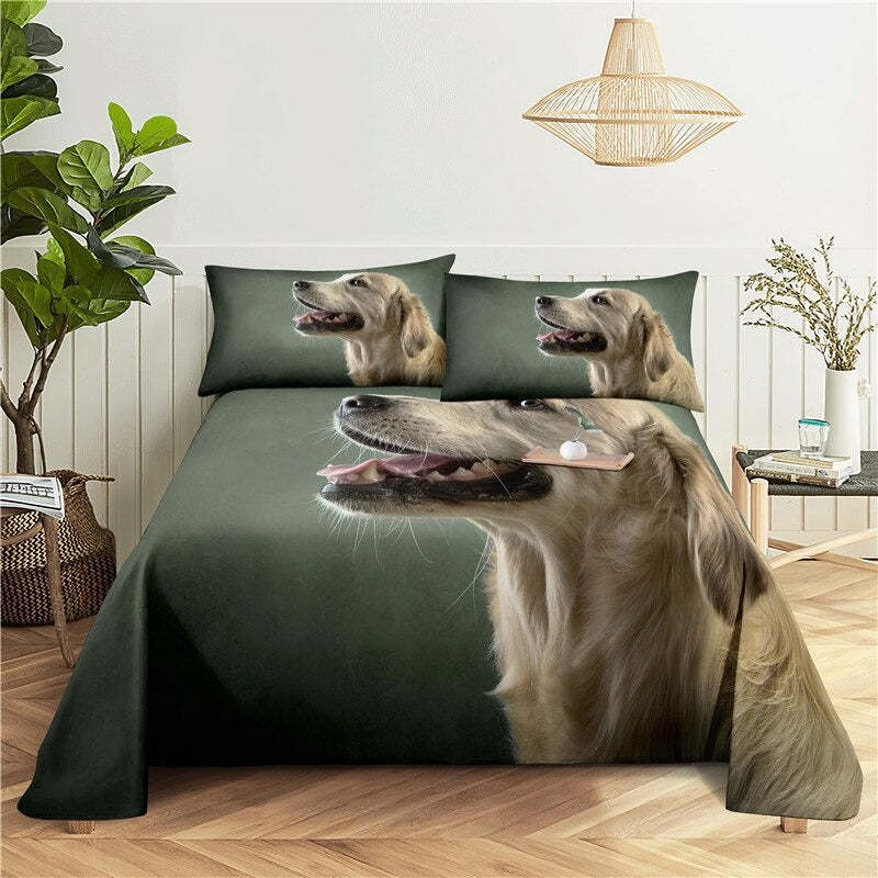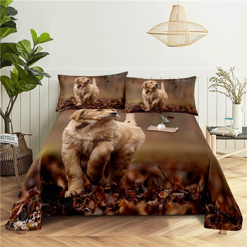 Golden Hair Dog Printed Bedding Set is made of polyester material, which is a synthetic fabric that is known for its durability, wrinkle resistance, and ability to maintain its shape. It is also easy to care for, as it can be machine washed and dried. The bedding set features a print of golden-haired dogs, adding a playful and cute touch to your bedroom decor. The polyester material is soft to the touch and comfortable to sleep on, making it a great choice for a cozy and restful night's sleep.