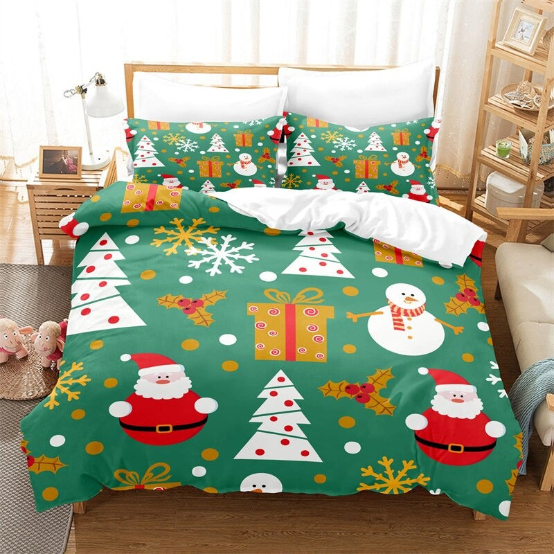 If you want a bedding set that is both warm and comfortable then our Green Christmas Duvet Bedding Set is ideal for you. It is made from microfiber so it's soft and comfortable for your little one to snuggle up in. This is a perfect gift for your family and friends. The double needles sewing edge and 3D digital printing technology make this duvet unique, while the bright color will set off holiday decor beautifully.
