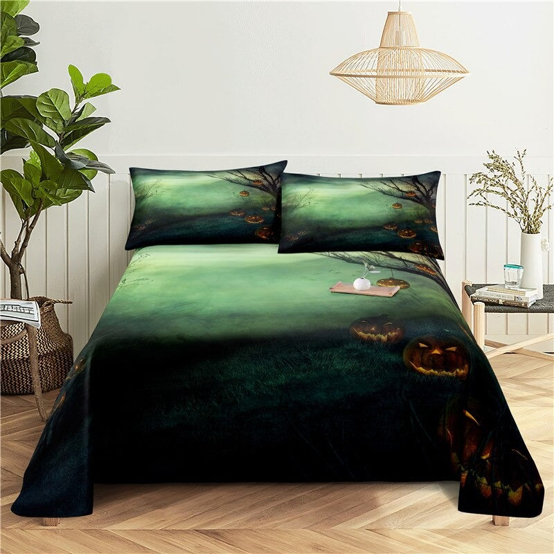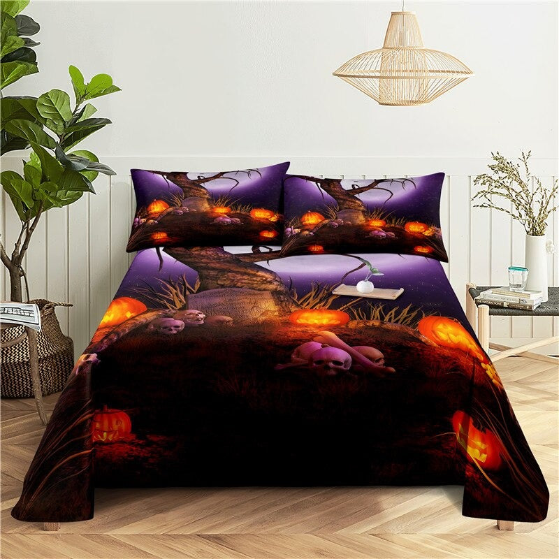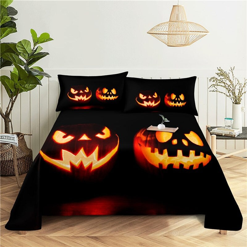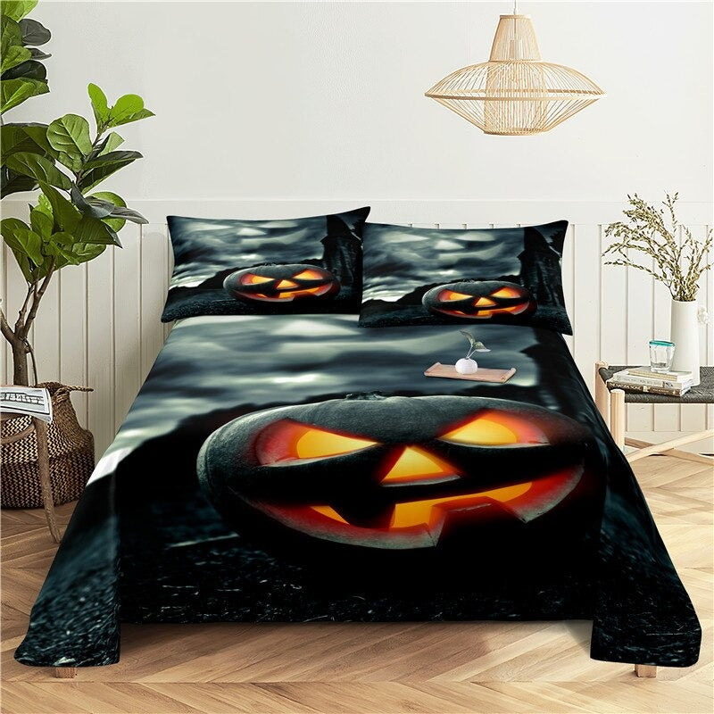 Halloween Pumpkin Digital Printing Bedding Set is a festive and spooky addition to any bedroom during the Halloween season. Made from high-quality polyester material this bedding set is soft comfortable and durable. The orange pumpkins are depicted against a black background creating a creepy and eerie atmosphere. The bold and vibrant colors of the print are sure to add a touch of excitement to your Halloween decor.