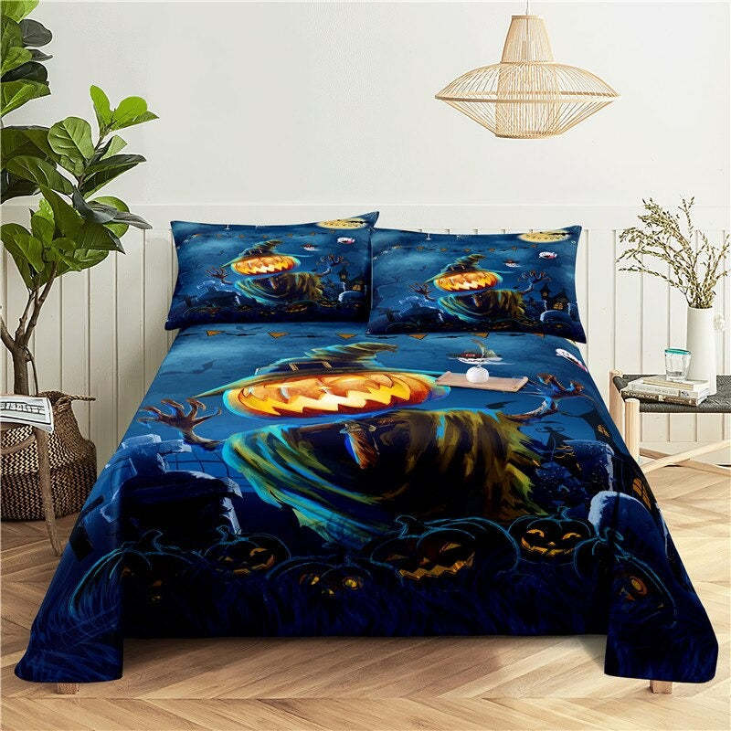 The Halloween Pumpkin Printed Bedding Set is a fun and festive way to add some spooky style to your child's bedroom. It is the perfect way to bring a little bit of the spooky season into their everyday life. The set includes a bedspread and matching pillowcases, which are all printed with a variety of images of pumpkins and ghosts. This set is machine washable and is sure to add fun and style to any bedroom.
