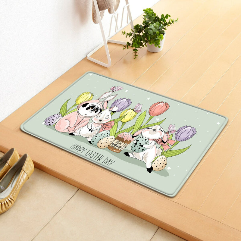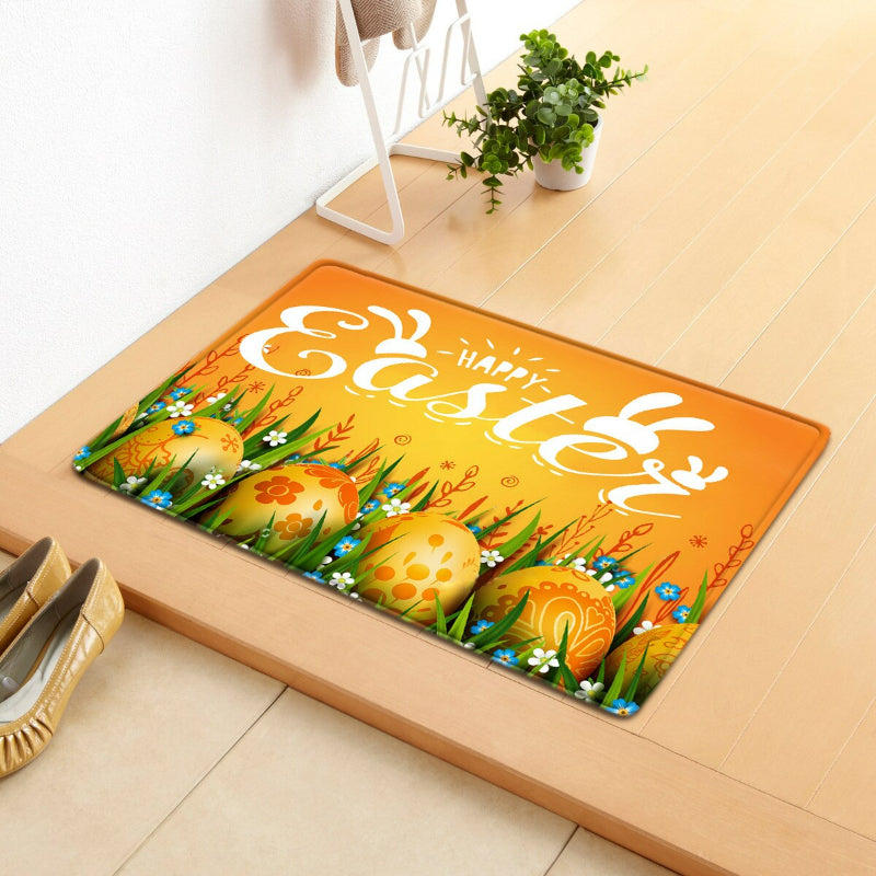 Happy Easter Themed Floor Carpet is made of rubber and a microfiber surface that provides reinforcement. This happy easter-themed floor carpet gives proper thickness which provides a lower profile to avoid tripping and provides easy door clearance. The high-quality material backing gives you a non-slip and flexible back that does not skids even when the mat is profoundly soaked in water or covered with dirt and keeps it in place.