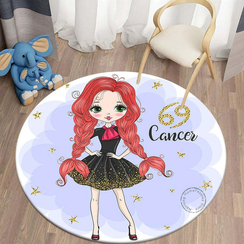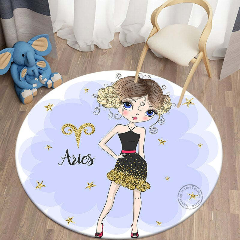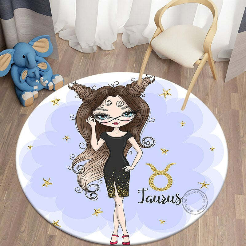 Home Decor Cartoon Girl Printed Round Mat has a cartoonist approach to represent the name of your zodiac sign. It has a print of your zodiac sign name with a cartoon girl. It is highly durable and very soft since it is made of the finest materials. The high-density super soft fabrics offer good ventilation.