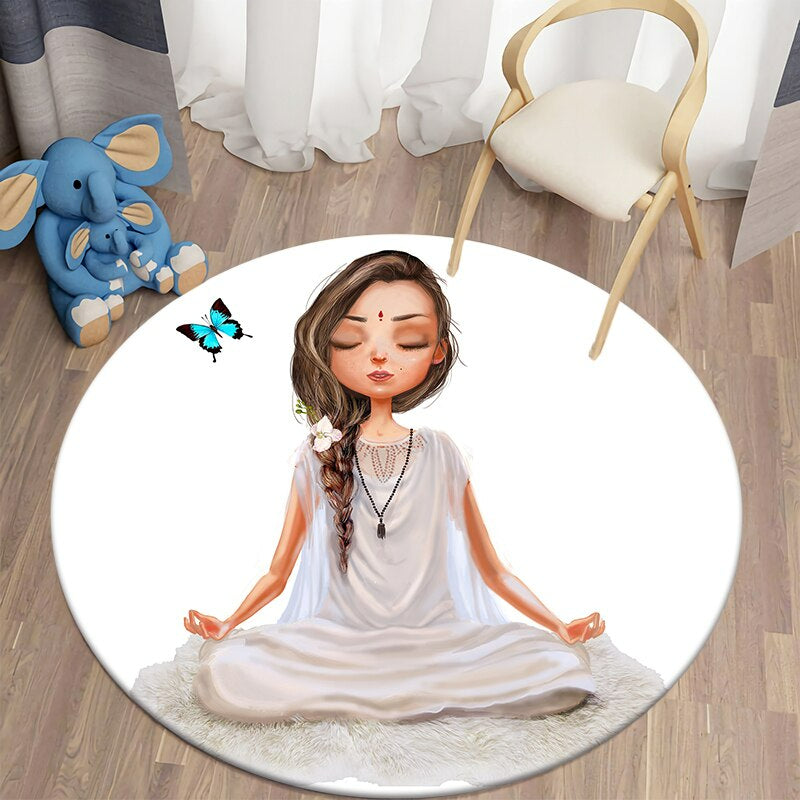 Home Decor Yoga Girl Printed Round Mat can be your morning yoga partner, it is soft and comfortable and available in a wide range of sizes. The mat follows a modern style and has flawless colors. It can be washed very easily by using the washing machine. The color will not fade away.