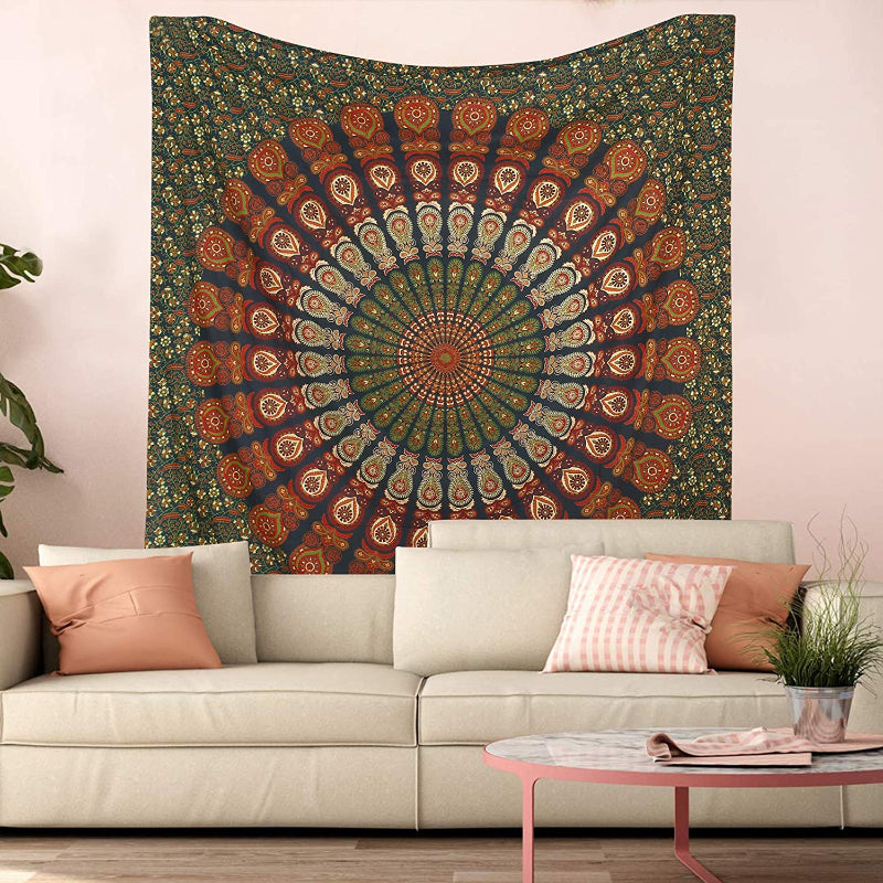 This magnificent tapestry mandala wall hanging will bring positive energy into your house and its surroundings. Because they are constructed of quality cotton, these tapestries are more appealing and distinctive. Your space has a wonderful mood because of the unique peacock mandala concept. From the available options, pick the wall tapestry size that is most suitable for you.