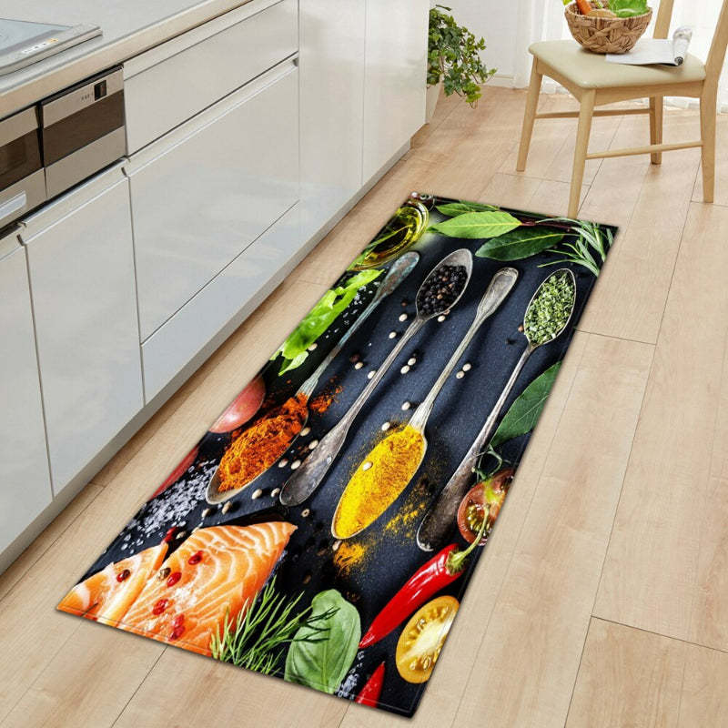 Kitchen Themed Home Decor Floor Mat is the perfect mat for your kitchen, as it has different prints related to things that are used in the kitchen. This will not only be an add-on but also very useful as it is dust-proof and water-absorbing, which will let your feet dry and your kitchen clean. It comes in four different sizes, so you can select it as per the space in your kitchen.